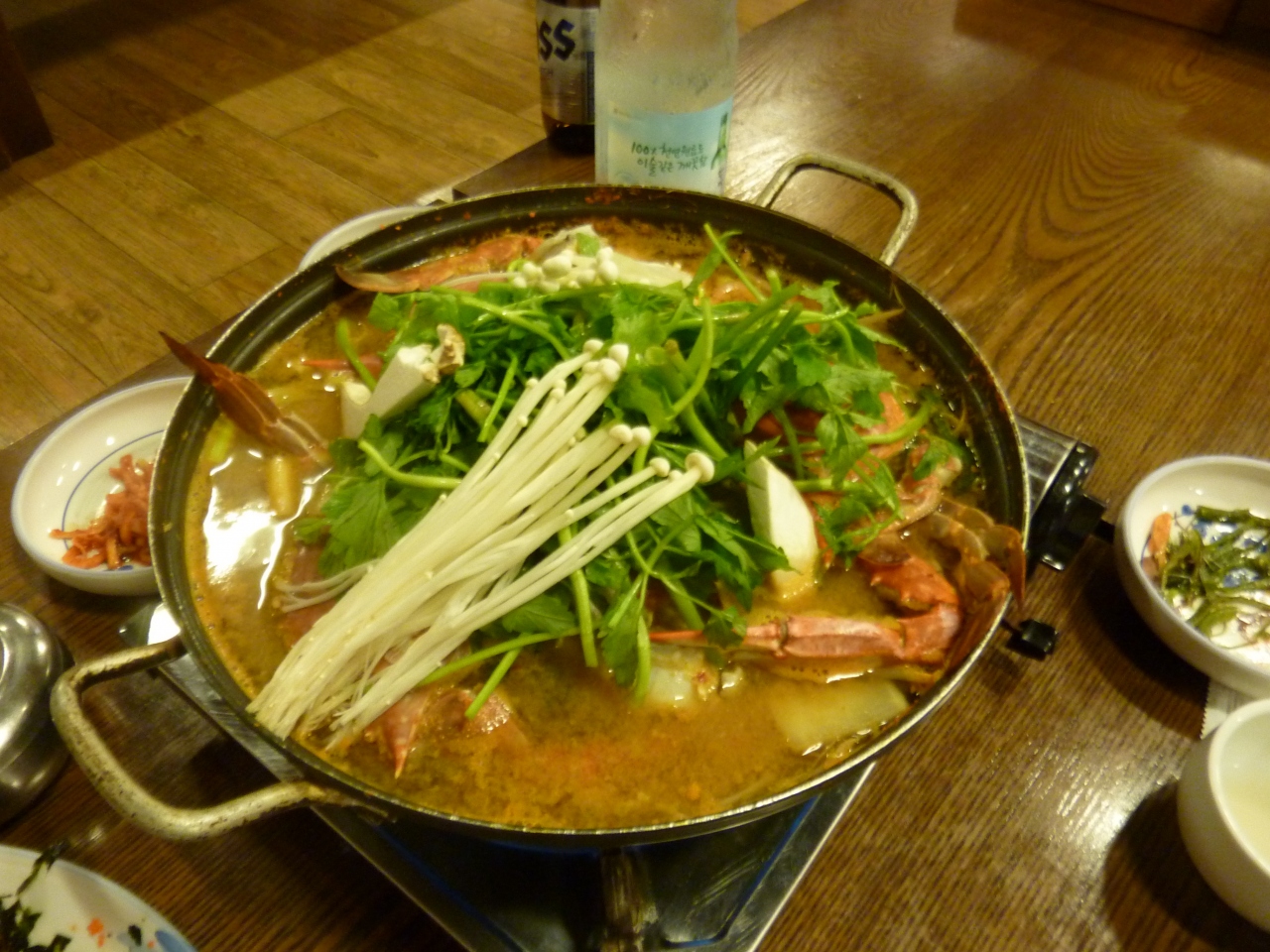 カンジャンケジャンが食べたくて行きました。注文は、カンジャンケジャン定食2人前とコッケタン鍋を注文しました。カンジャンケジャンの甲羅にご飯を入れて混ぜて食べるのは最高に美味しかったです。カンジャンケジャンはちょっと塩辛いので3人で2人前で丁度よく、コッケタン鍋も美味しかったです。お店のおじさんも日本語が上手で、とても満足しました。お客さんは私が行った時はみんな日本人でした。