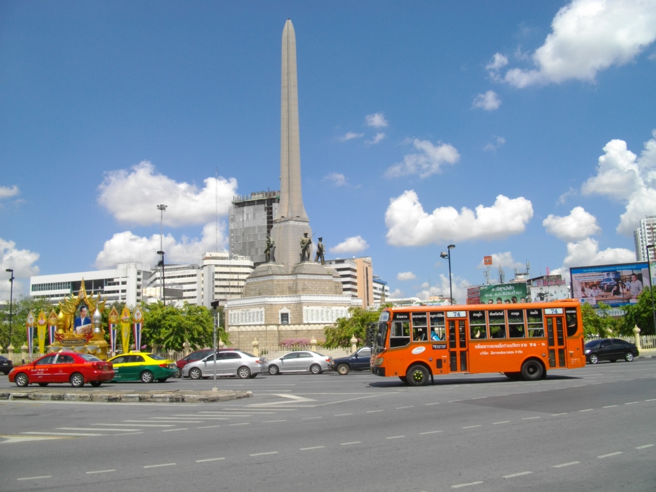 空港からカオサンまでバスで行く際、この戦勝記念塔のすぐ横のバスターミナルで乗り継いだ。記念塔は、1940年のタイ-仏領インドシナ紛争で戦没したタイ軍兵士を慰霊するもので、1941年に建立された。塔は、先が尖り、、青い空へ突くように高く立っており、戦勝を祝っているように見えた。まわりには、市内及び近郊へのバスの停留所がずらっと並び、BTSのアヌサーワリーチャイサモーラプーム駅も近い。このため、大勢の人の波は途切れず歩道から溢れんほどであった。これらのことから、特にこの戦争に関心や知識のある方には、訪問することをお勧めする。
