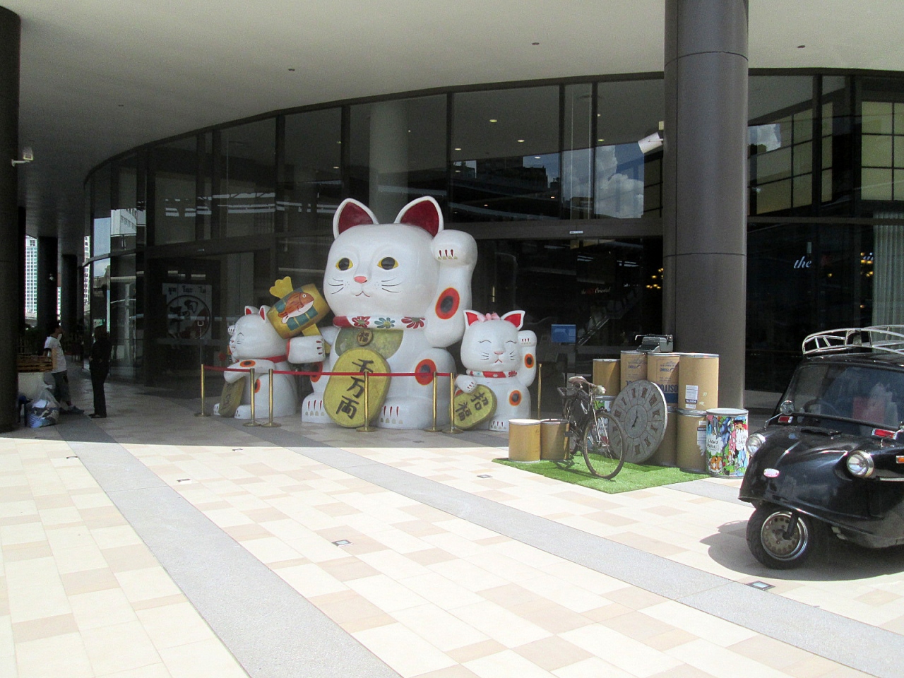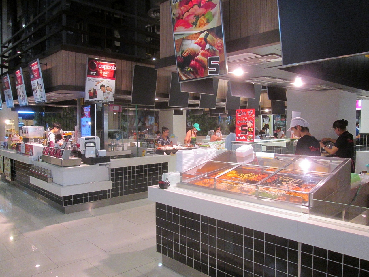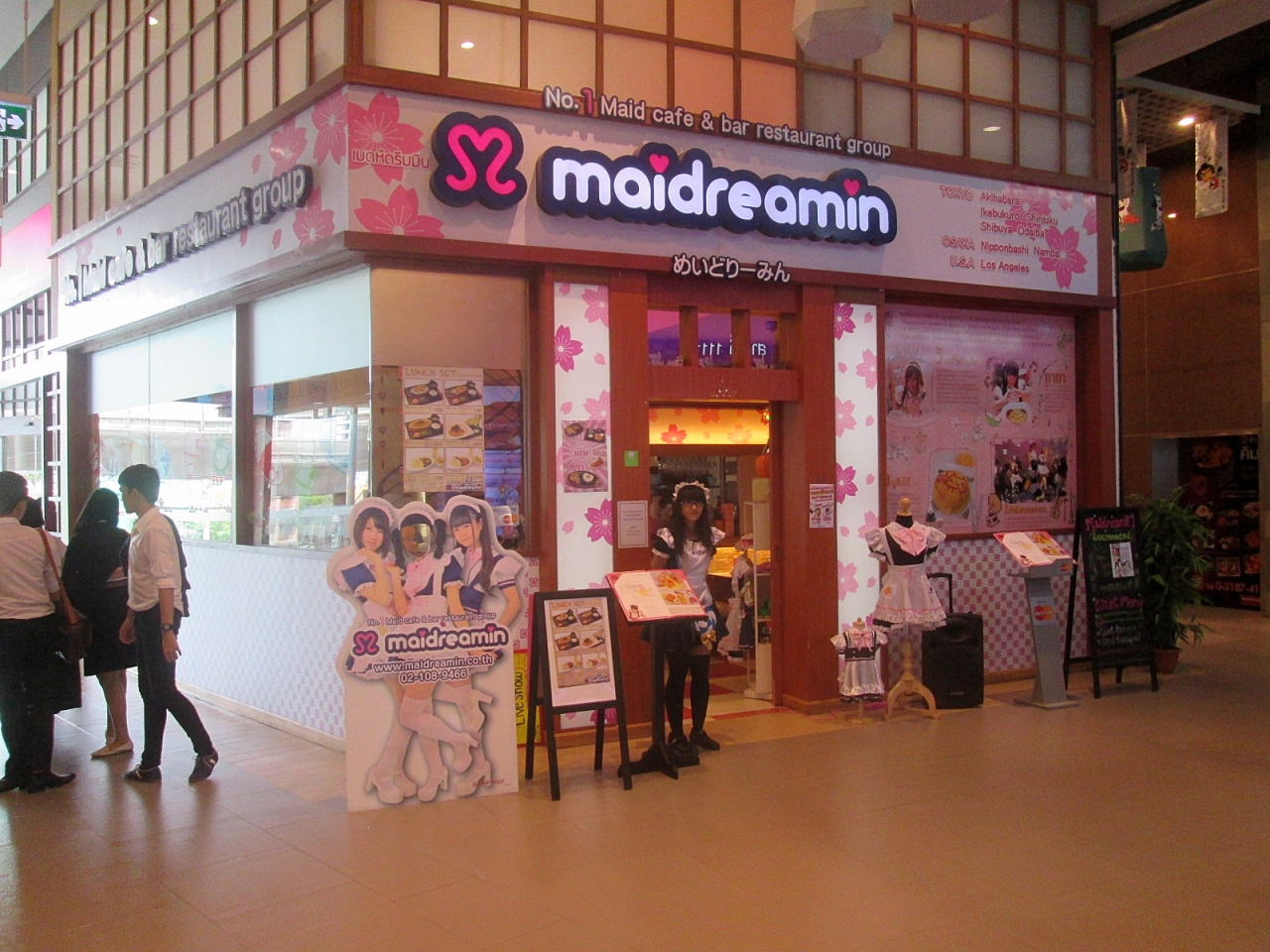 元々BTS「プロムポン」・「エカマイ」・「トンロー」周辺は、駐在員を中心とした日本人が多く住む地域です。そのBTS「エカマイ」に直結した「ゲートウェイ」は、いわゆる日本の”フード・テーマーパーク”のような場所です。何も知らず「エカマイ」駅からの連絡通路で「ゲートウェイ」に向かうと、入り口前には大きな招き猫や昔懐かしいオート三輪などが飾られており、「ここは何なの?」と思わせてくれます。建物に入ると大きな鳥居があり、その先に進むと”ししおどし”をモチーフにしたオブジェのある広場となっており、その広場を囲むように日本食レストランがずらりと並んでいます。レストラン以外にも日本のお菓子専門店やメイドカフェなどもありますし、インフォメーションデスクの女の子は浴衣姿、その脇には絵馬のオブジェと、まさにジャパニーズカルチャー及びサブカルチャーの発信基地といった雰囲気です。1階にも日本食関係の小店舗、また日本の雰囲気を持たせたフードコート(パッとしませんが…)、そして日本の市場をイメージしたような一角もあったりしますので、日本が恋しくなった人や日本にあこがれを持つタイ人にとって天国のような場所かも知れません。近年、タイを訪れる中国・韓国人客の激増の影響によって、各所に中国語やハングル文字が目立つようになり、相対的にタイにおける日本の影は薄くなったと感じています。こうしたビルの存在が日本復権の起爆剤になれば良いですね。