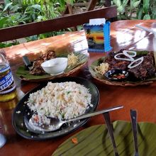 注文したのはチキングリルとポークスペアリブとフライドライスと定番のみ。