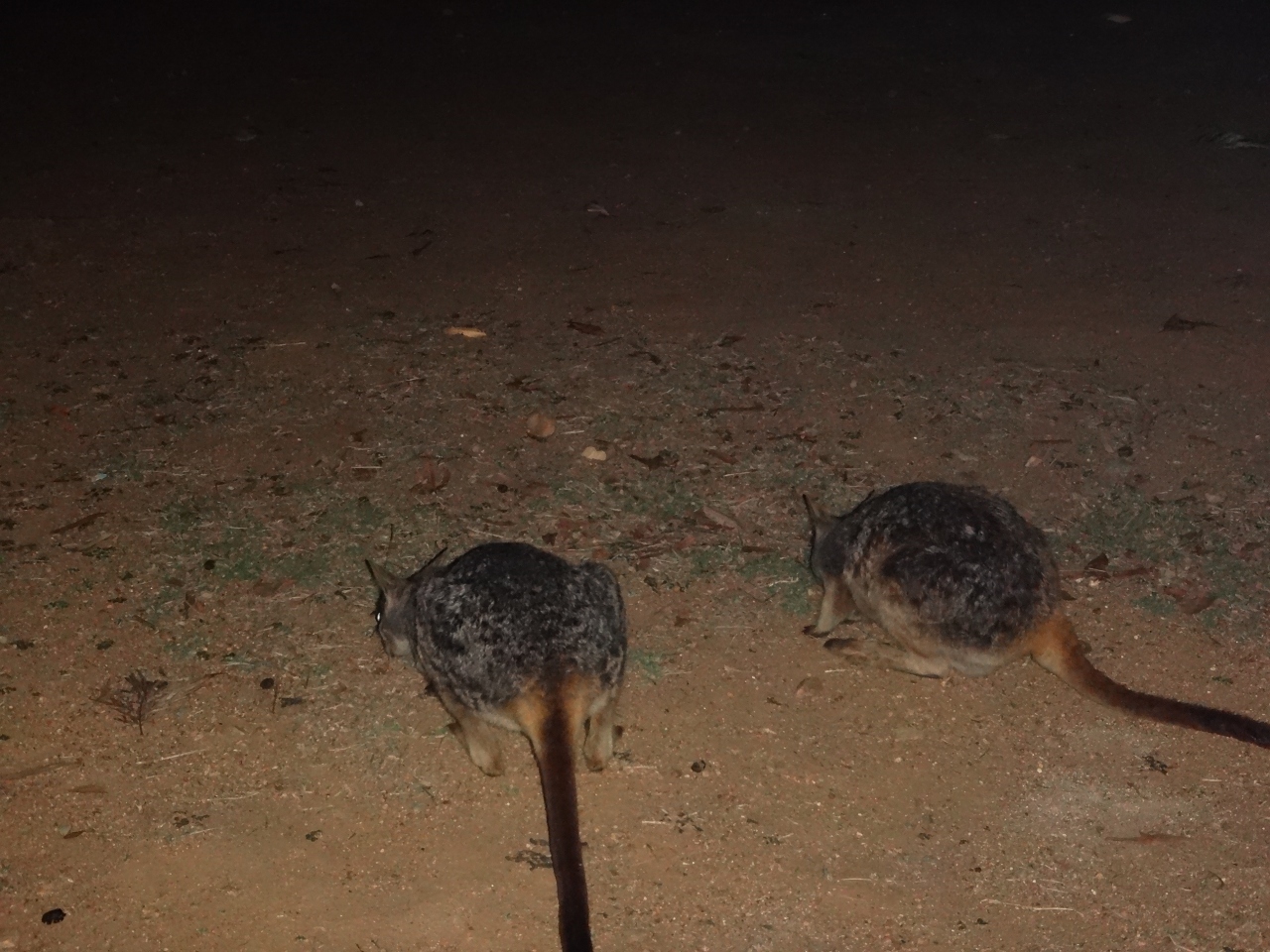 グラネット渓谷は正直真っ暗で周りなんにも見えません。そんな中、施設?を進んでいくとロックワラビーたちが。