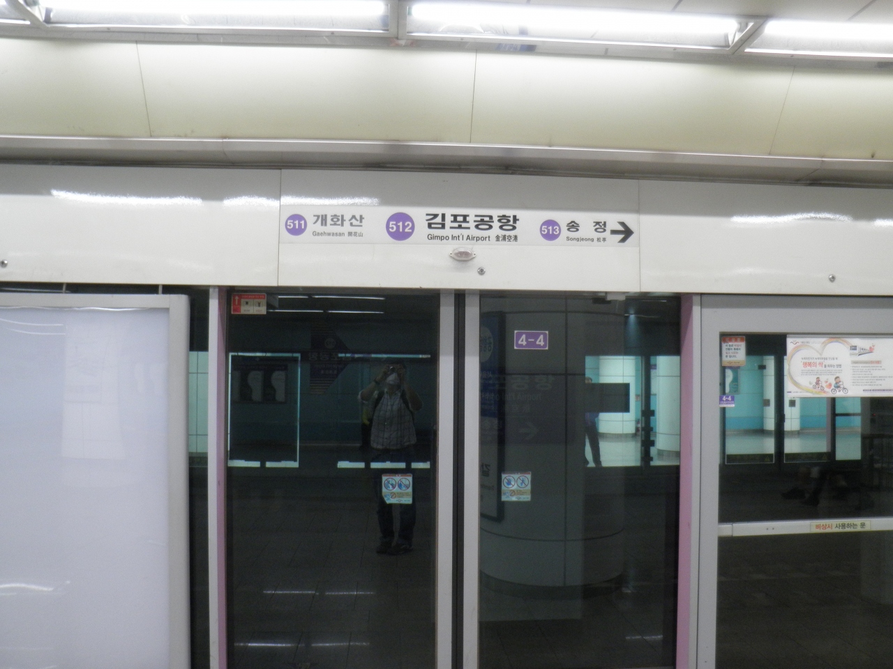 ソウルの漢江の南側の新吉駅から地下鉄5号線にのって、金浦国際空港駅まで移動しました。ソウルの地下鉄は、外国人でも切符が買いやすいし、料金も安いと思います。乗車マナーもいいし、駅の番号を覚えると乗り降りのタイミングも解りやすいと思います。