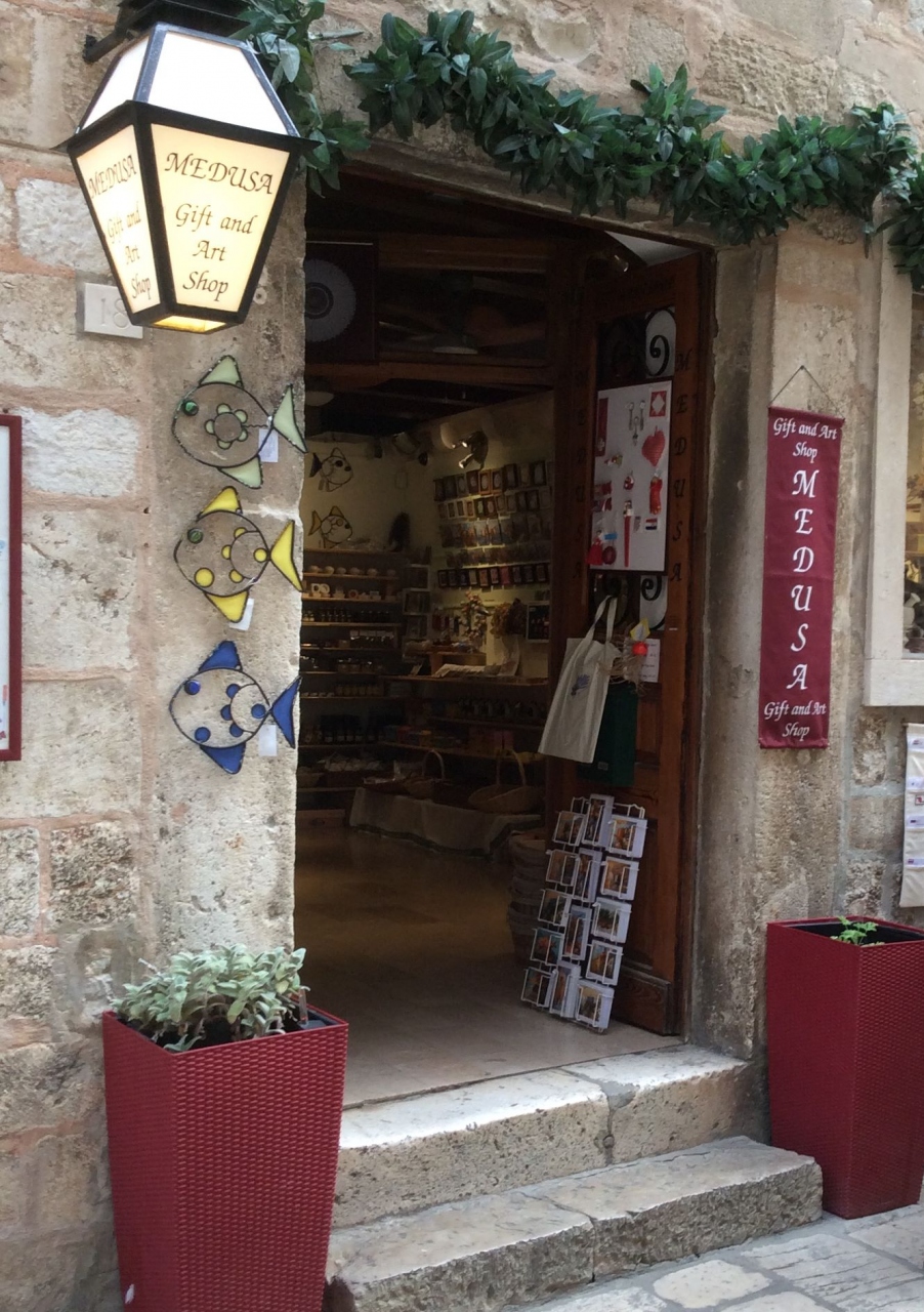 プラツァ通りの一本奥の細い通りにある雑貨店です。