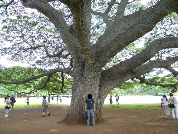 宣伝等の映像では何度も見ましたが、実際に見るとメチャクチャ大きいです。日本にも生殖するネムの木と仲間との事ですが確かに咲いてる花はネムの木の花と同じでした。このモアナルアガーデンには他にも大きな木が沢山植えて有り日よけには最高の場所です。