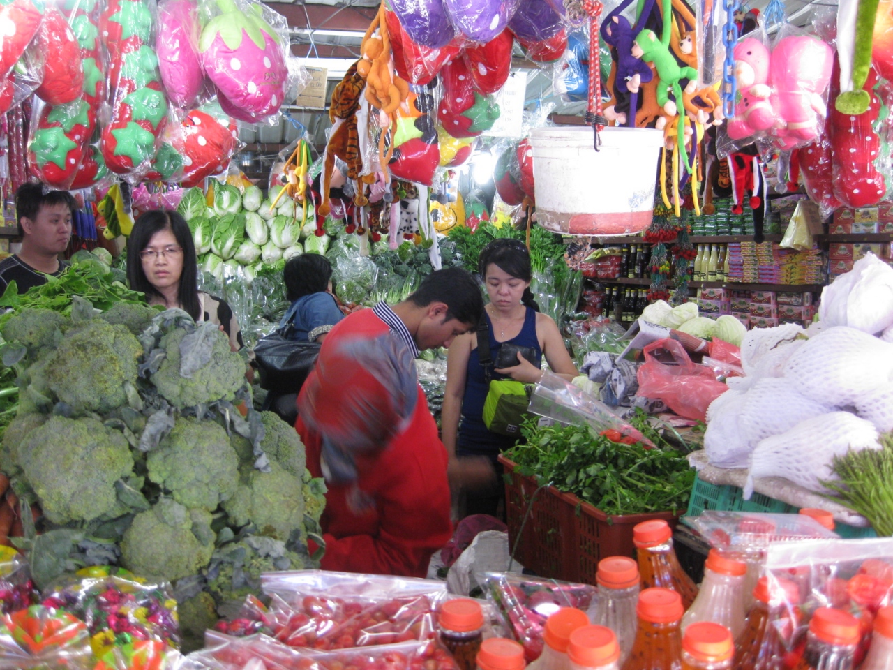 野菜や果物、雑貨などの市場が軒を連ねています。