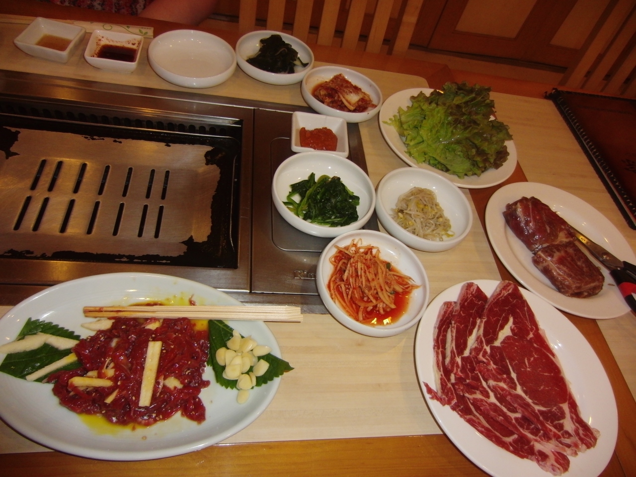 広くて落ち着いた雰囲気の焼肉と韓国料理が楽しめるレストランで、大小の個室もあるようです。今回はコンビニエンス大阪の紹介でお店まで迎えに来てもらいました。食べたメニューはコンビニエンスストア大阪スペシャルセット。大人1名分が税、サービス込みで30ドル。写真は一部でメニュー全てを撮影出来ませんでした。質はそれほどではないが、ボリュームは凄いです。4名以上でチジミのサービスがあるようです。帰りはホテルまで送ってもらいました。