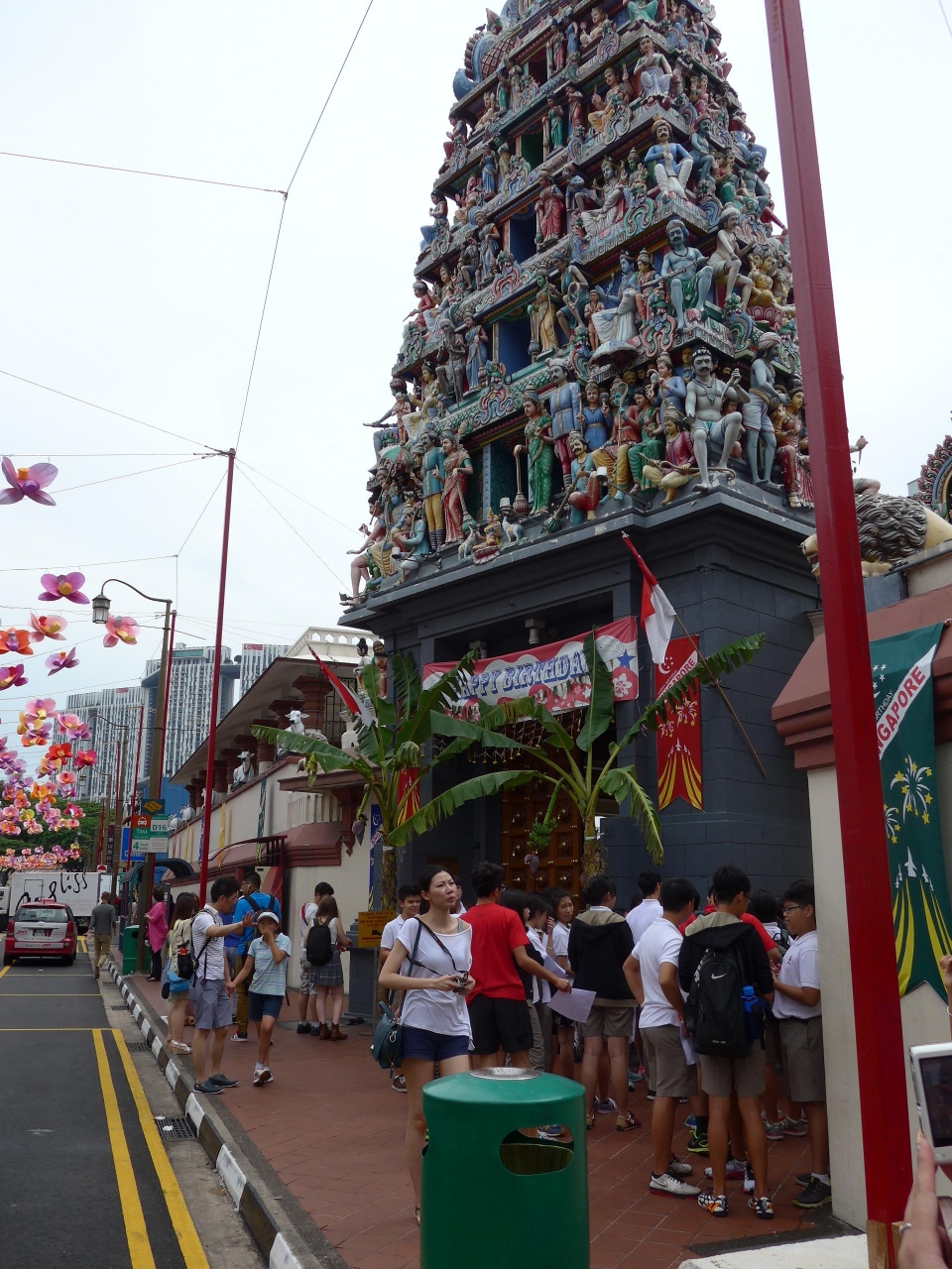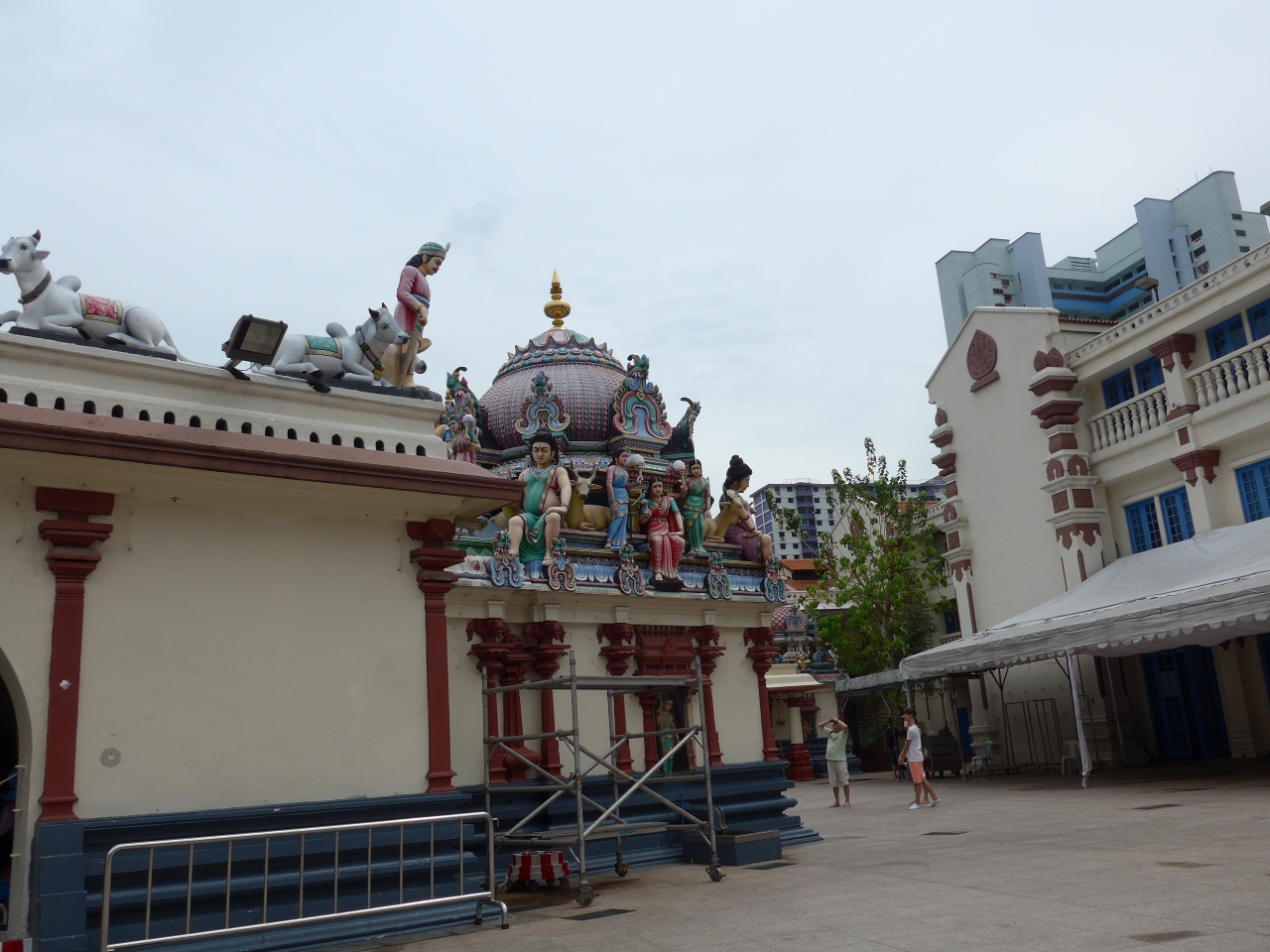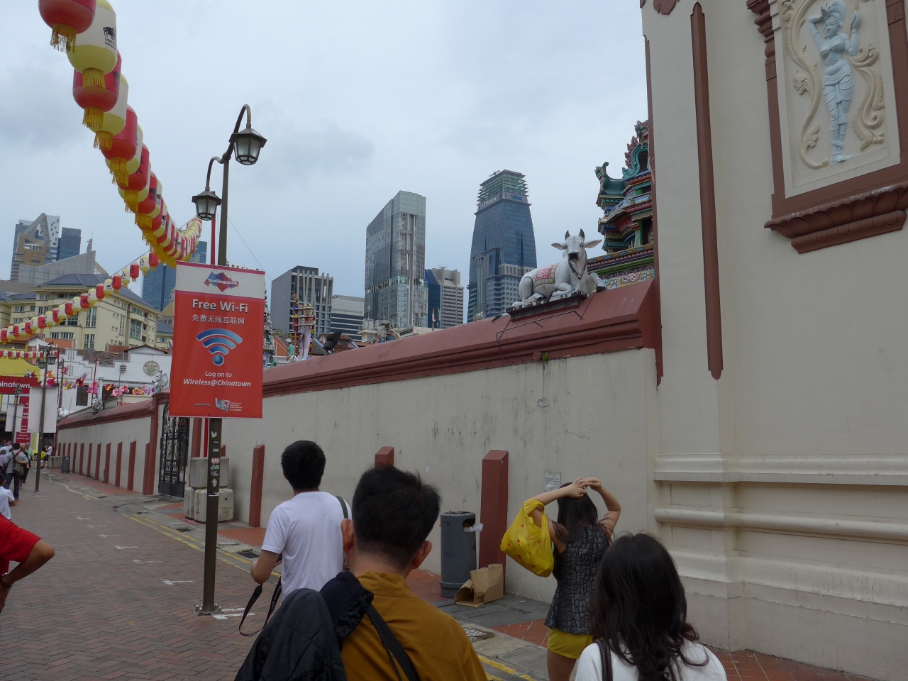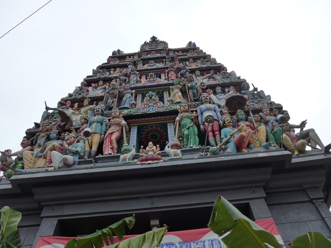チャイナタウン到着も街並みで直ぐに判りますがなんと言っても真っ先に目に飛び込んでくるのが彫刻で彩られたすり・マリアマン寺院のコープラム(高門)です。