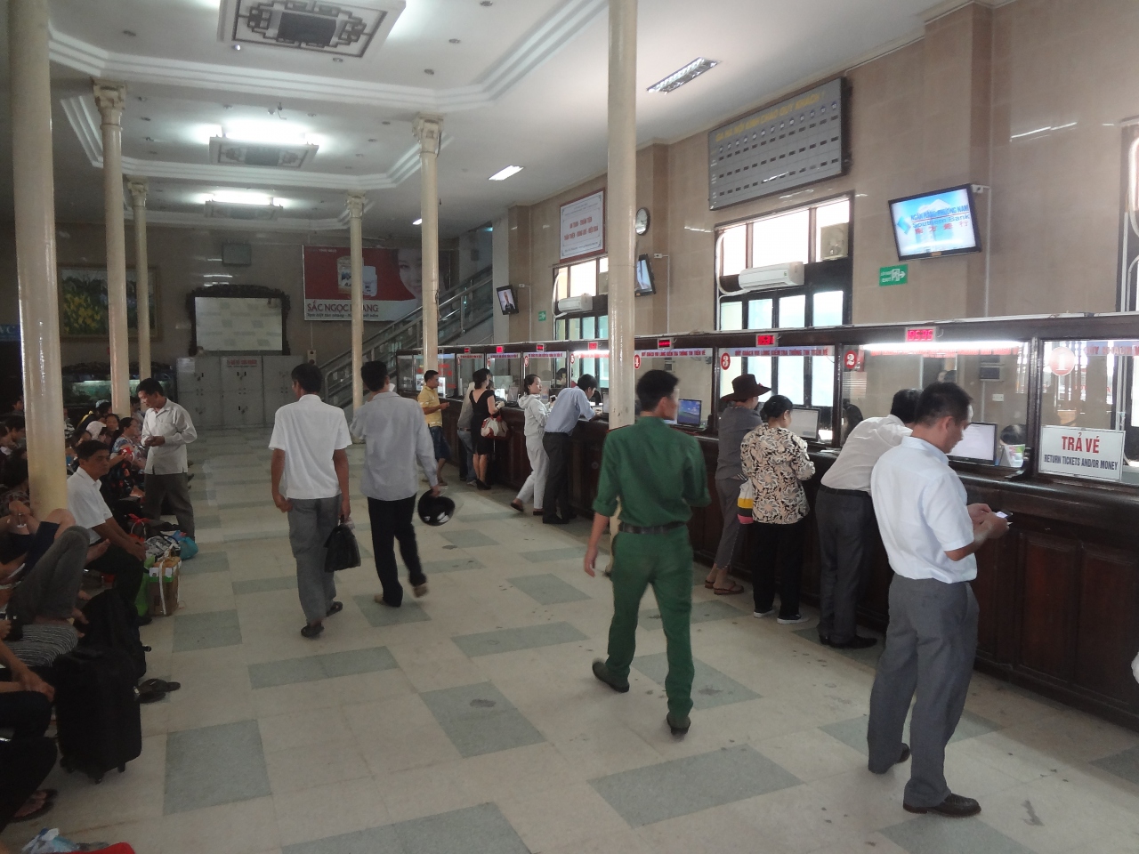 ハノイ市内散策の途中で立ち寄りました。駅舎自体は相当に古く、逆にそれがアジアの駅をイメージさせられました。駅舎に入ると待合室があり、切符の販売は窓口で行われていました。時刻表が手書きだったのが印象的です。飲食店は2、3件ファーストフード的なものがある程度でした。正直いってあまり活況な雰囲気はありません。改札口がるので切符がないと間近で列車を見ることができませんでした。中心部からはやや離れています。
