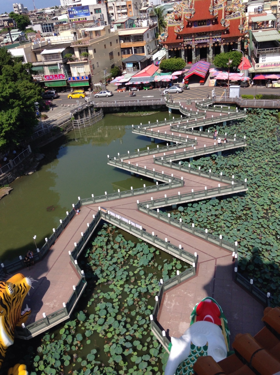 左営駅から、タクシーで行きました。110元。子連れにはタクシーの方がおすすめです。龍から入り、虎からでると厄払いができるみたいです。9時くらいから観光。到着時にはガラガラでしたが、帰りはどんどん人が増えてきました。階段をぐるぐる登ると景色がきれいです。ただ、すごい暑かったので、早めの時間か夕方に行くことをおすすめします。