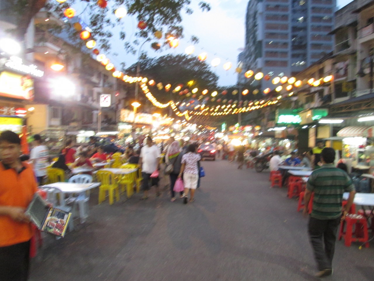 アロー通りの屋台街です。ブキッ・ビンタン通りの隣の通りに位置しています。クアラルンプール最大の屋台街でたくさんの店が並んでいます。地元の人だけでなく観光客が多いです。メニュー表は写真が付いて日本語で解説がありました。定番のサテーをつまみながらビールを飲んで過ごしました。