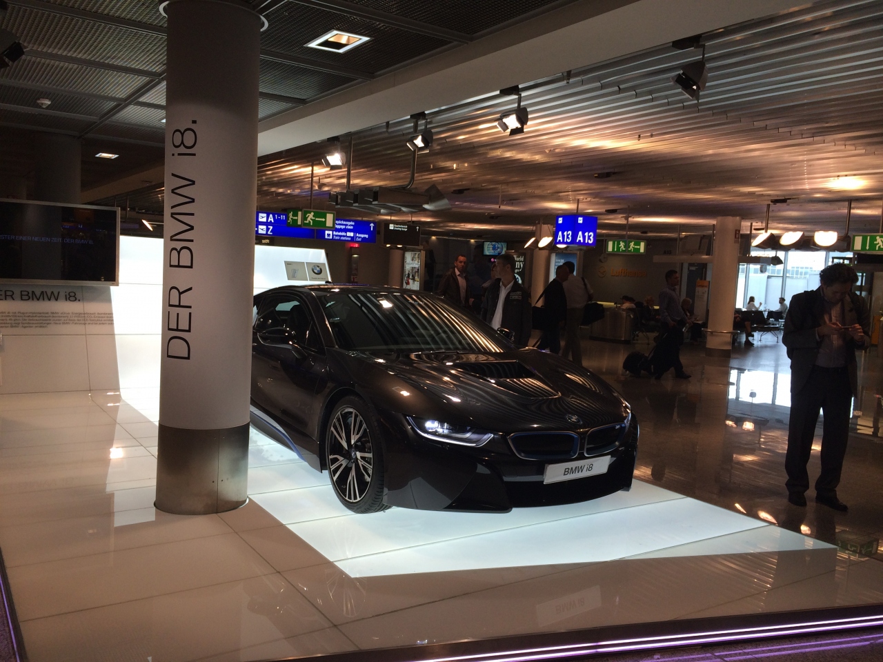 ミラノに行くのに乗継で利用しました。EU加盟国なので、イタリアに行くにもここで入国審査を受けました。空港内は結構広くかなり歩かされることがあります。さすがドイツなので、BMWi8が展示されていました。思わず写真撮影。