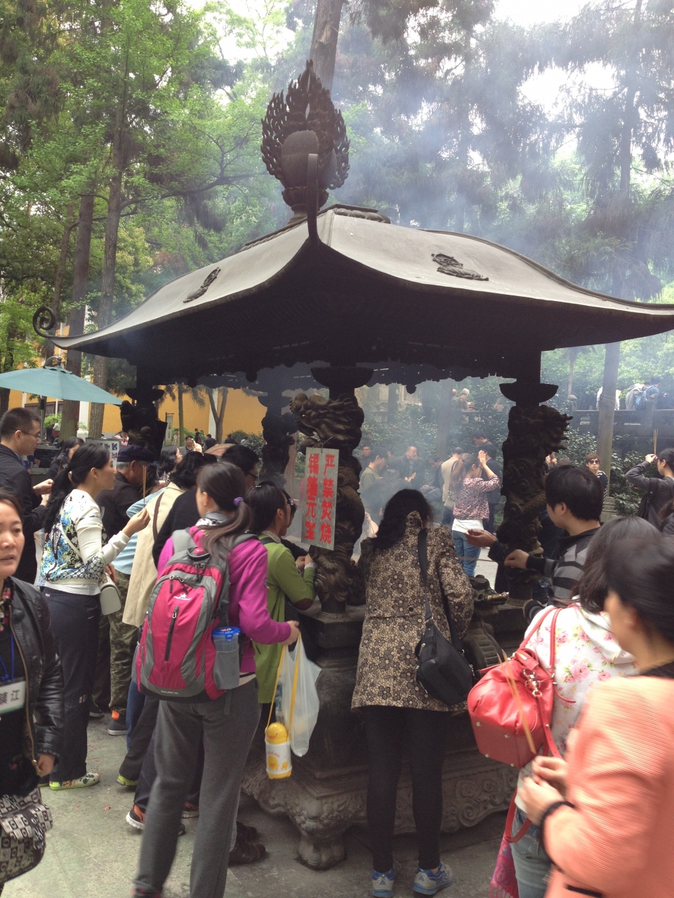 上海から高鉄で杭州まで行き、バスを乗り継いで約2時間でつきました。お寺は由緒のあるところで仏教に詳しい中国の友人はこのお寺のことを知っていました。お寺は広くお参りするところは何箇所かあり全てを回ると半日以上かかります。お寺は緑が多く、ゆっくり散歩気分でおまいりしました。中国のお祈りの仕方は日本のそれとは若干違いますが、線香に火をつけるときはあまりに熱くやけどをしそうになりました。