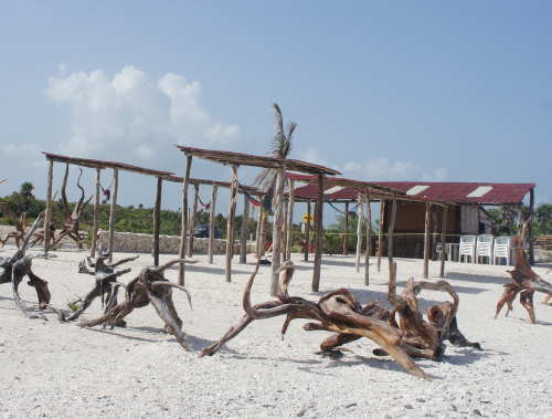 近くには、流れ着いた木のような物がアートのように並んでいたり。