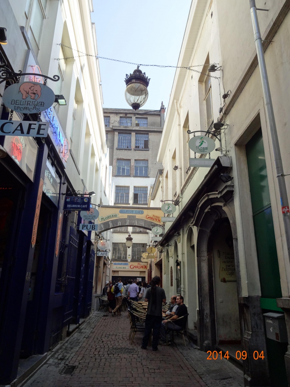 道幅は狭いのですが、店の外にテーブルが並べられ、みなさん、そこで食事をしています。