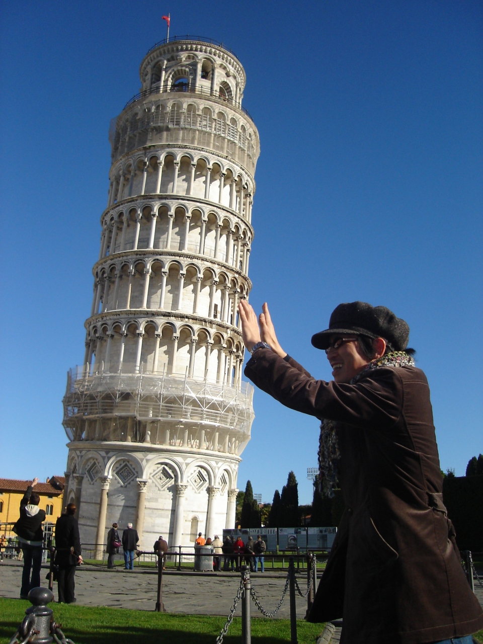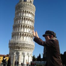 ピサへはフィレンツェから電車で1時間~1時間30分ほど、ピサ駅から斜塔の看板を見ながら徒歩で15~20分ほどで着きました 徐々に斜塔が近くに見えてくるので歩いてる時も楽しめます しかし本当に結構、斜めで笑えました 周りの土産屋の置物も斜めに作ってあり面白かったです