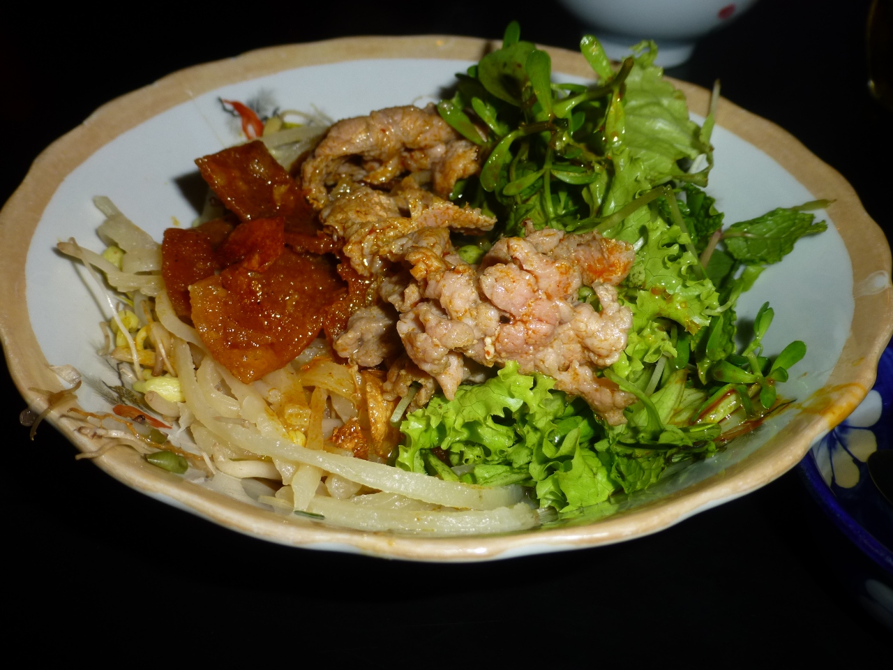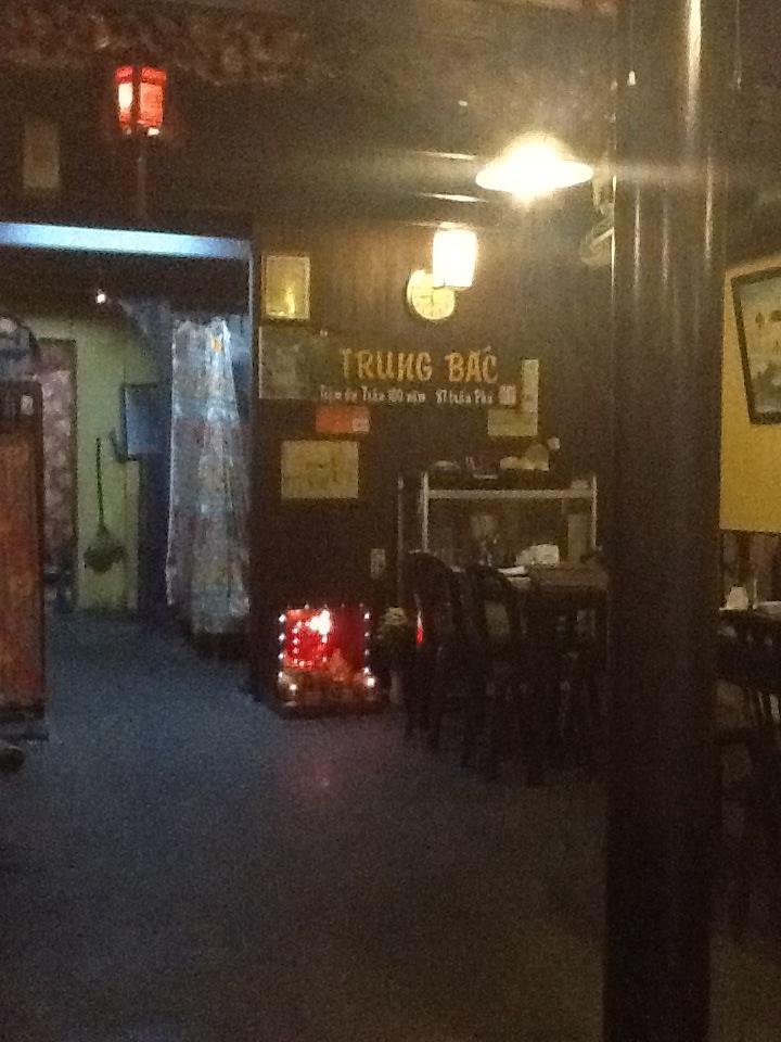 ホイアンで3大名物料理を少し早めの夕ご飯でチュンバックで食べてみようと探しましたが、看板も目立たず、店も暗かったので一度通りすぎて、戻ってやっと見つけました。100年以上前の建物らしくノスタルジックというか古びているという感じと表現していいのかという店内です。