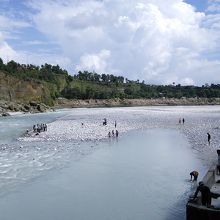 なんとも不思議な川です。場所によって全く異なる表情を見せてくれます。大地が浸食され深い渓谷のようになっている場所があるかと思えば平野を流れる普通の川のようなところもあります。その境がちょうど見られる場所があります。ニューバザールのマヘンドラブルと呼ばれる橋から川沿いに500mほど下ると小さな橋がありその脇にある階段を降りていくと河原に出ます。そこには火葬場のある寺院がありセティーガンダキ川のふたつの顔が見られます。