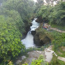 今の時期は水量が少ないと言われましたがそこそこの迫力はありました。しかしなんとなく物足りなさを感じました。滝?の周りにはもちろん柵があるのですがその柵の位置がビミョーで肝心な穴の奥の方が見えない。もう少し柵をせり出すとかいっそのこと穴の上に橋をかけるとかした方がもっと楽しめると思うのですが…。また入口横にある白いオブジェ、おそらくヒマラヤの山々を似せて作ったのもや民族衣装が描かれた顔だし看板的なものがあったりしてそのチープさがデヴィスフォールの価値を下げているように感じました。