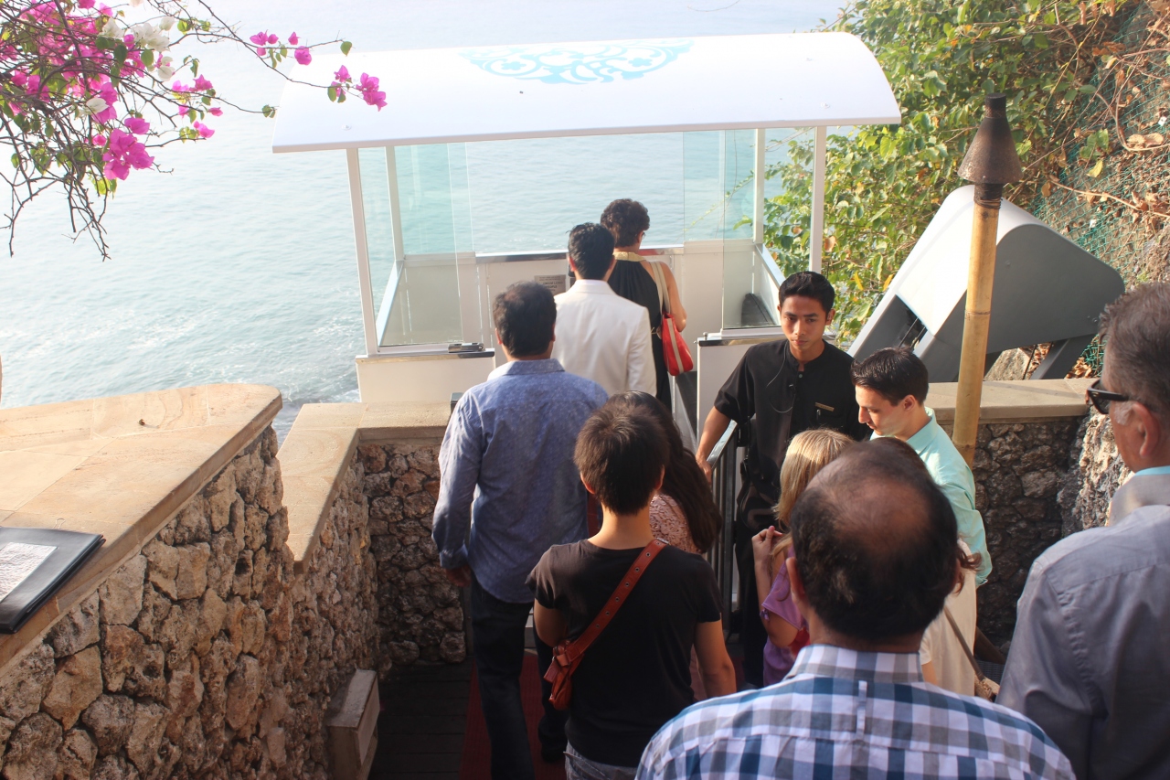 とてもおしゃれで雰囲気がいいです。アヤナホテルの中にあります。ビーチ沿いのロックバーに行くには、階段で降りるか、8人用のゴンドラを使うかの2種類あります。アヤナ宿泊者には専用レーンがあり、早く乗ることが出来ます。夕日時がお勧めですが、かなり混んでいます。