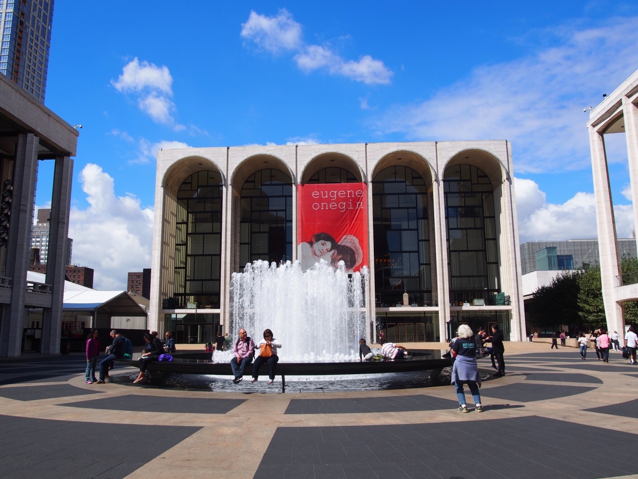美景、噴水と青空とリンカーンセンター
