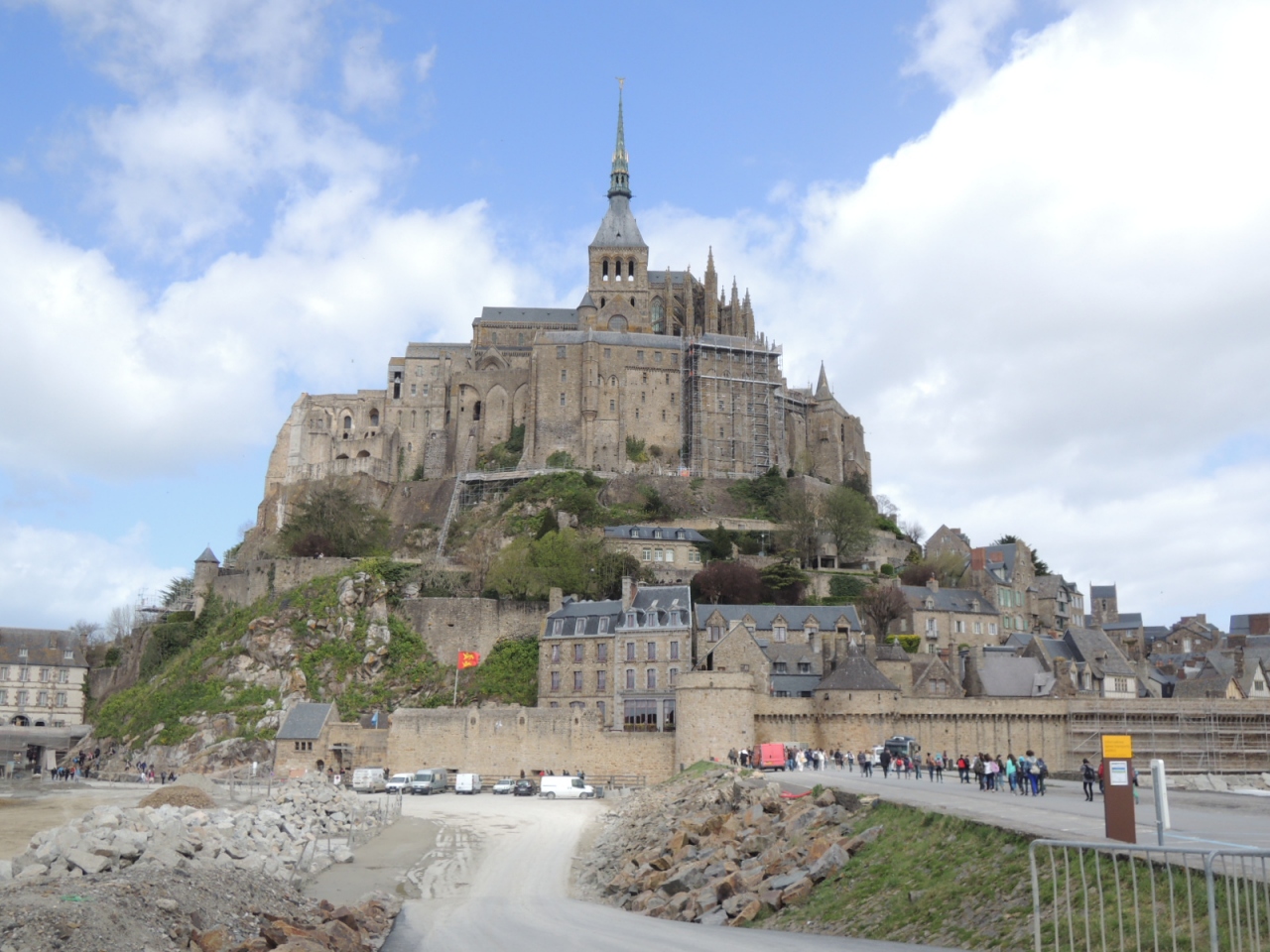 1・現在の観光バス駐車場から電気自動車に乗り換え、電気自動車を降りてさらに10分ほど歩いてモン・サン・ミッシェルに行く途中の道路からのモン・サン・ミッシェルの眺めは最高です。良い写真が撮れます。