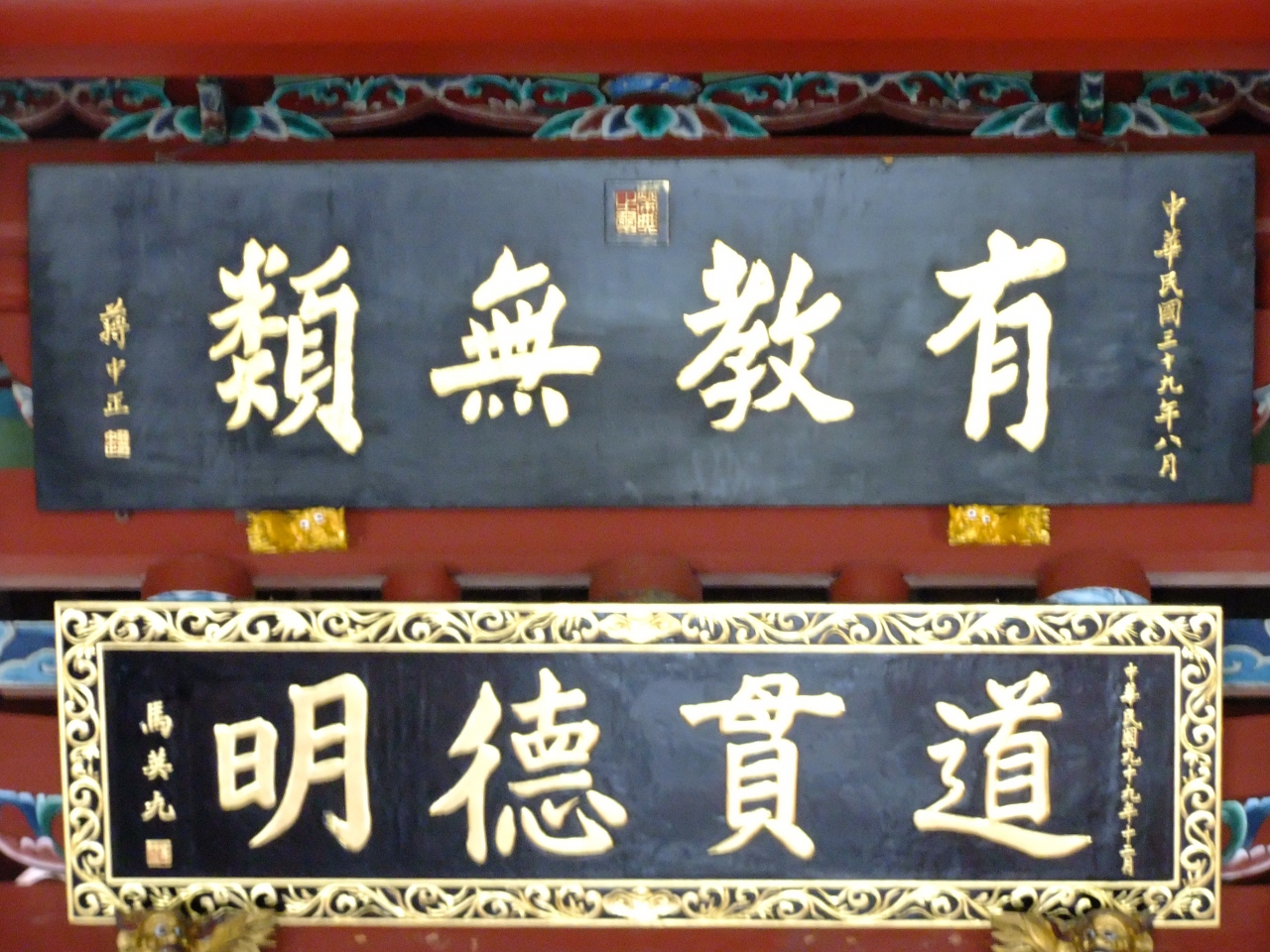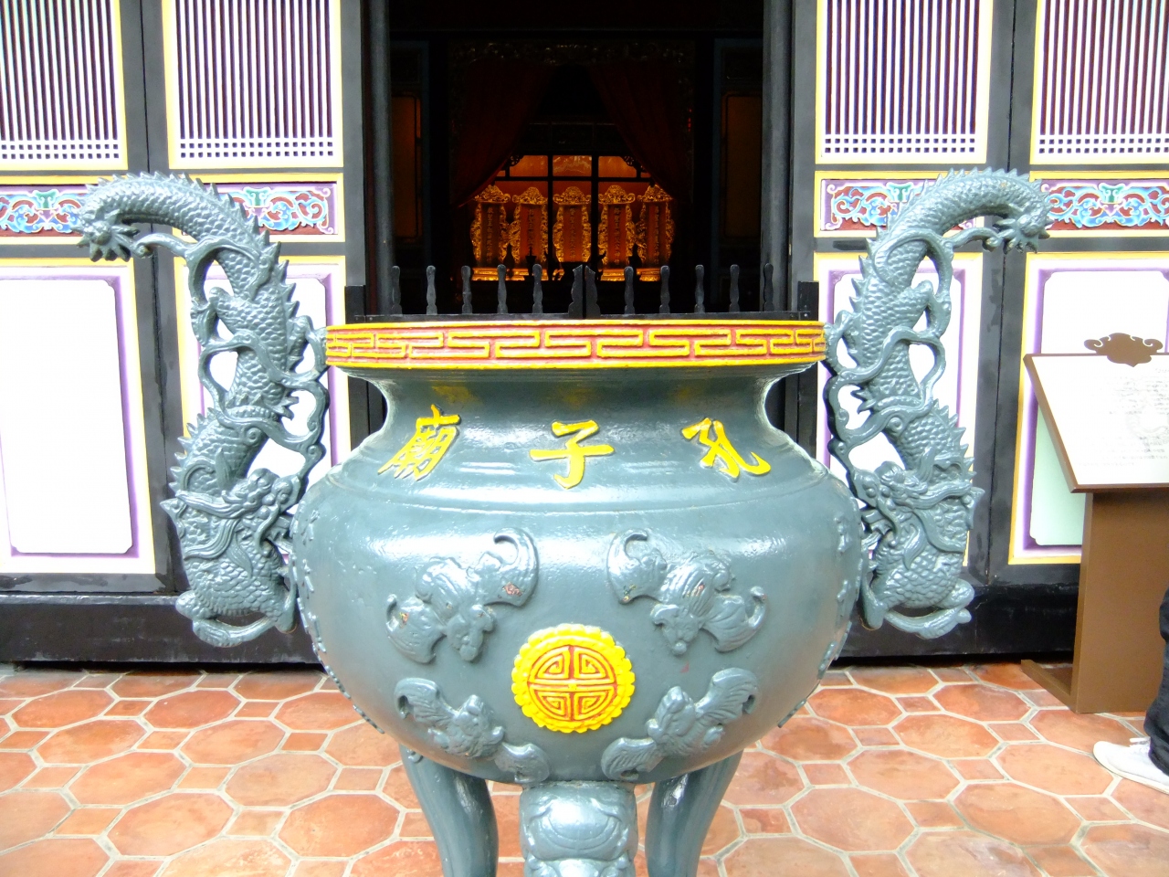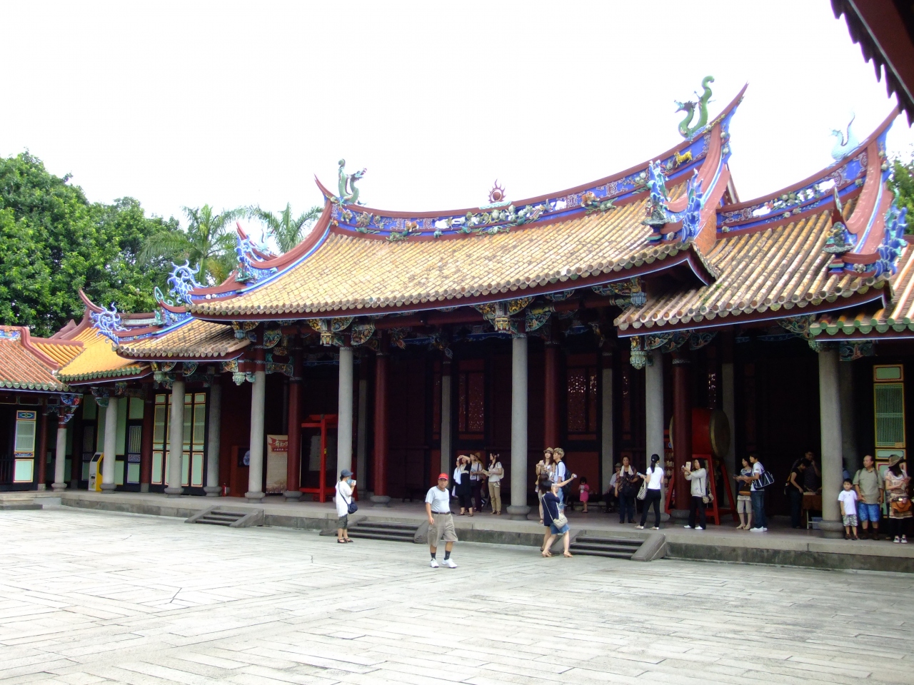 本殿の前に来ると張り詰めた空気が流れているように感じます。それは台湾の他の寺院と異なり派手な感じはなく、ただただ重圧感があります。本殿んお周りにはに回廊が設けられています。その周りには近所の方なのか?私服の方達が箒を持ち掃除をしています。生活の一部がここにあるんだなと感じました。祀られているのが、学問の神様であることと関係があると思いますが荘厳さが漂っています。