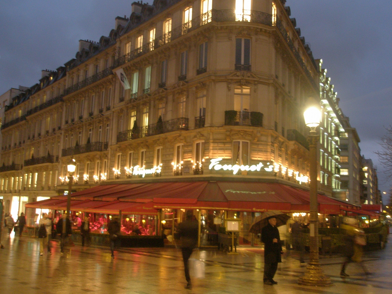 ヴィトンの本店などブランド店が並び高級感が漂う一方、マックやカフェも多く、歩き疲れたら気軽に休める。かの有名なカフェフーケッツも通りに面していて見つけやすい(ヴィトンのすぐそば)。赤を基調とした店の入り口はいかにもフランスいう感じでキュート。