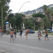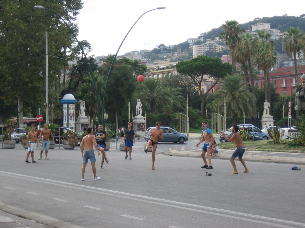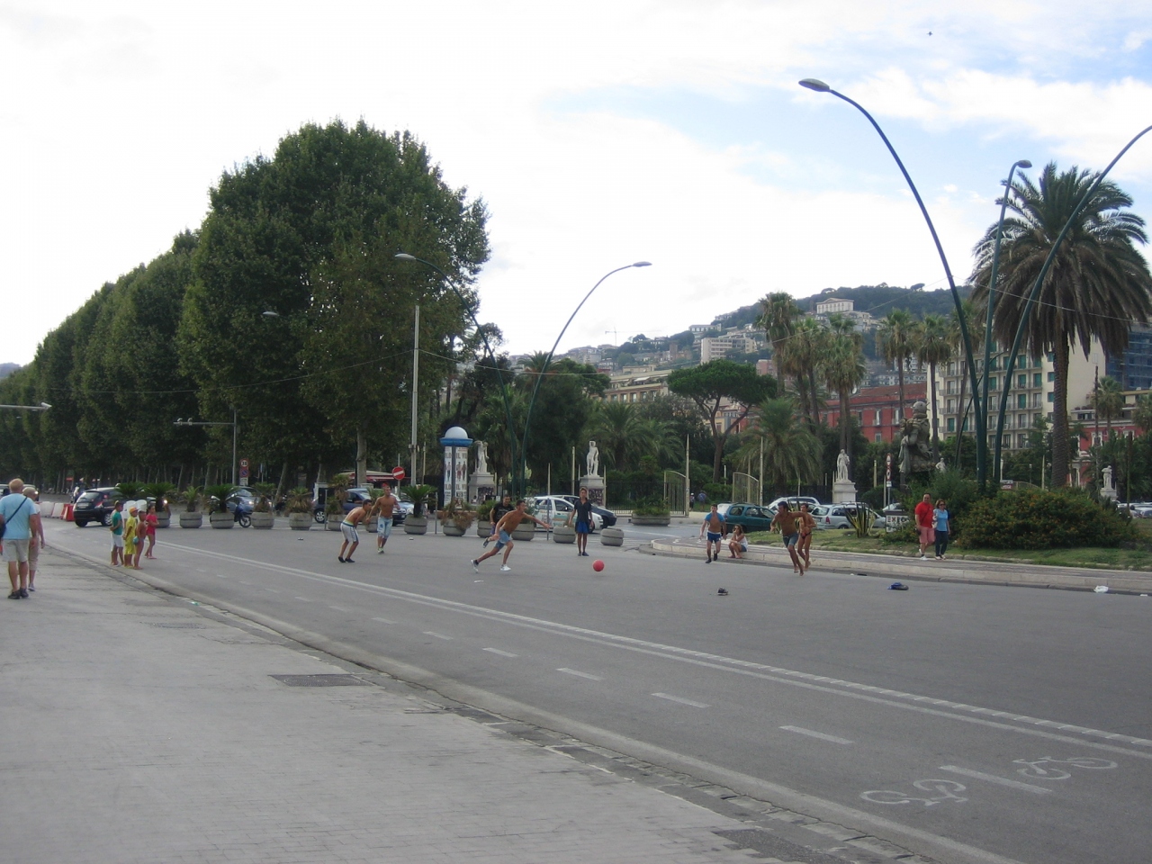 サンタルリアの風向明媚な景色を楽しみ、卵城など観光スポットに立ち寄りながら東から西へ歩いていくと、最後に見えてきます。歩行者天国のようになっているスペースがあって、地元の若者が皆でサッカーをしていました。