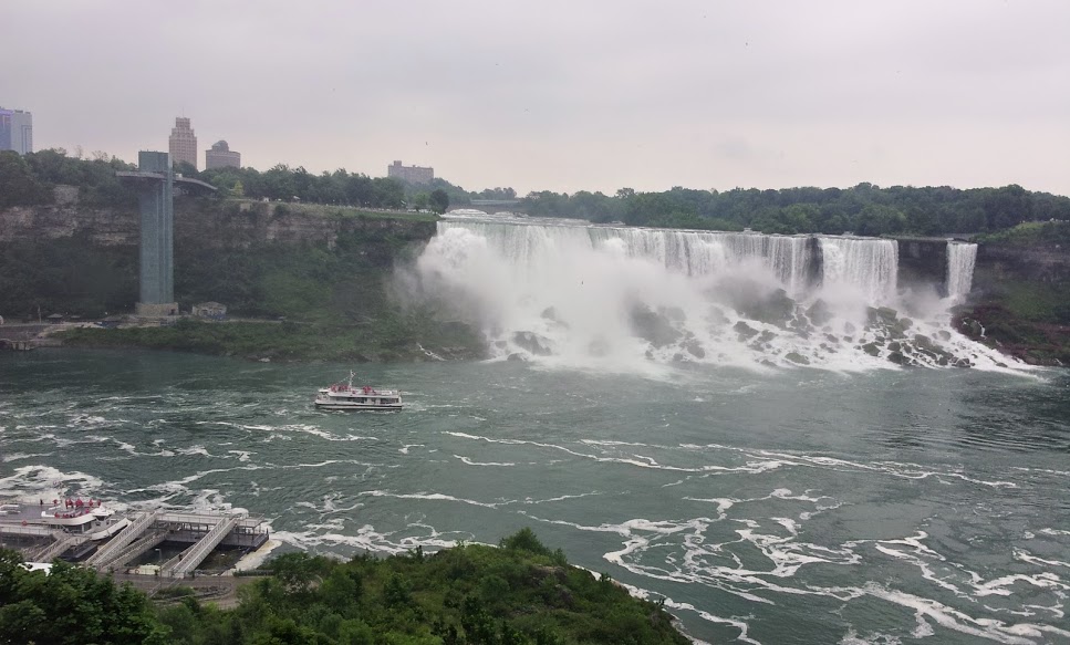 ナイアガラにはアメリカ滝とカナダ滝があります。アメリカ滝はアメリカ側に位置していて滝全体を見るならばカナダ側かレインボーブリッジから見ると綺麗に全体が見えます。運がいいと虹がかかった滝もみれるので晴れた日に行くとおすすめです。ライトアップもカナダ側からされるので、カナダ側かレインボーブリッジからみるととても綺麗です。