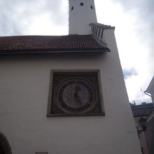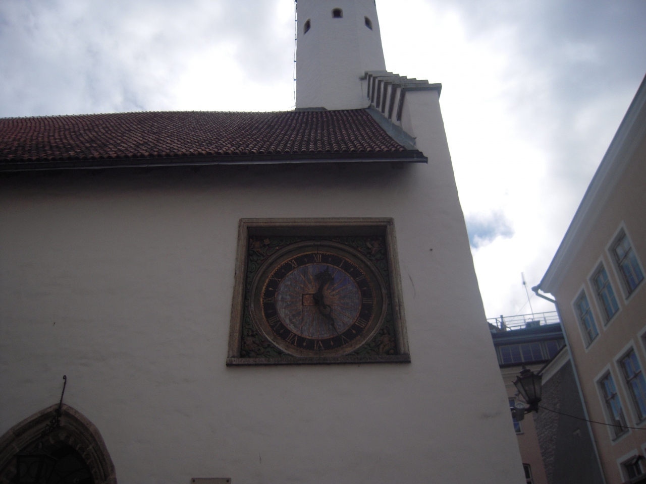 外観の特徴は、写真にあるように壁埋め込みの時計があります。これは、タリンでの最古の公共時計とのこと。