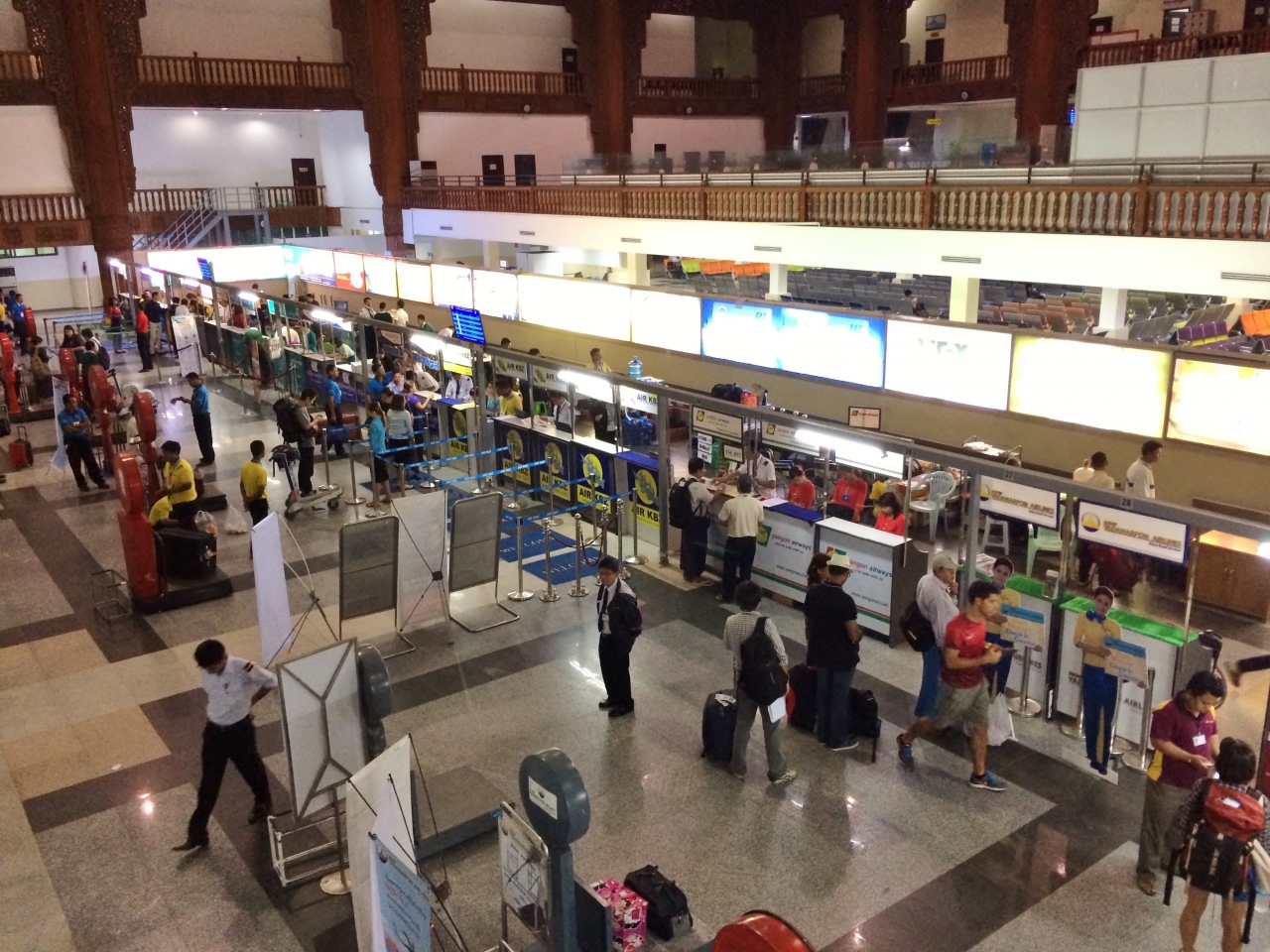 ※なお、国内線は全く別の建物なので、市内からタクシーを利用する際は「ドメスティック」と念を押してください。 こちらは出発の1時間前にならないとチェックインカウンターが開きません。搭乗手続きも全て手作業です。