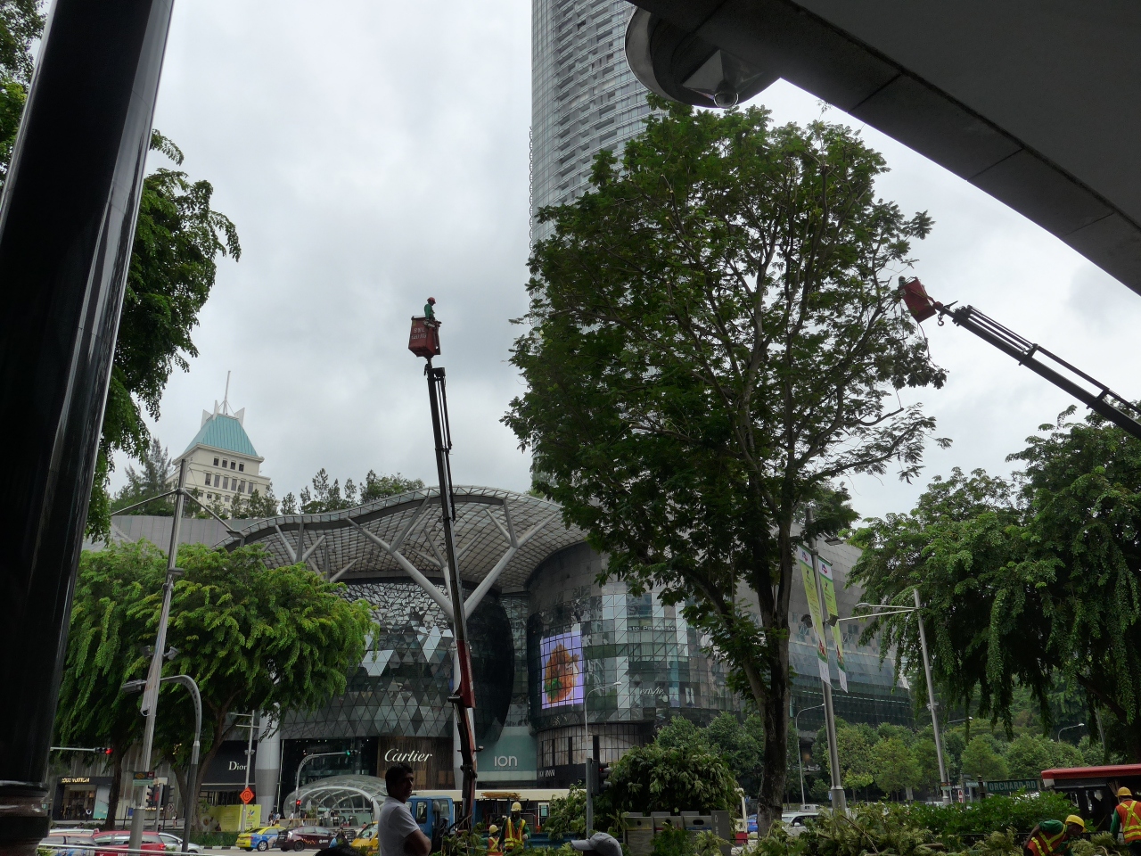 МRTの「オーチャードロード駅」から地下通路で繋がり上へ出るとオーチャードロードとスコッツロードの交差点です。道を挟んで一番のショッピングビル「アイオン・ION」があります。