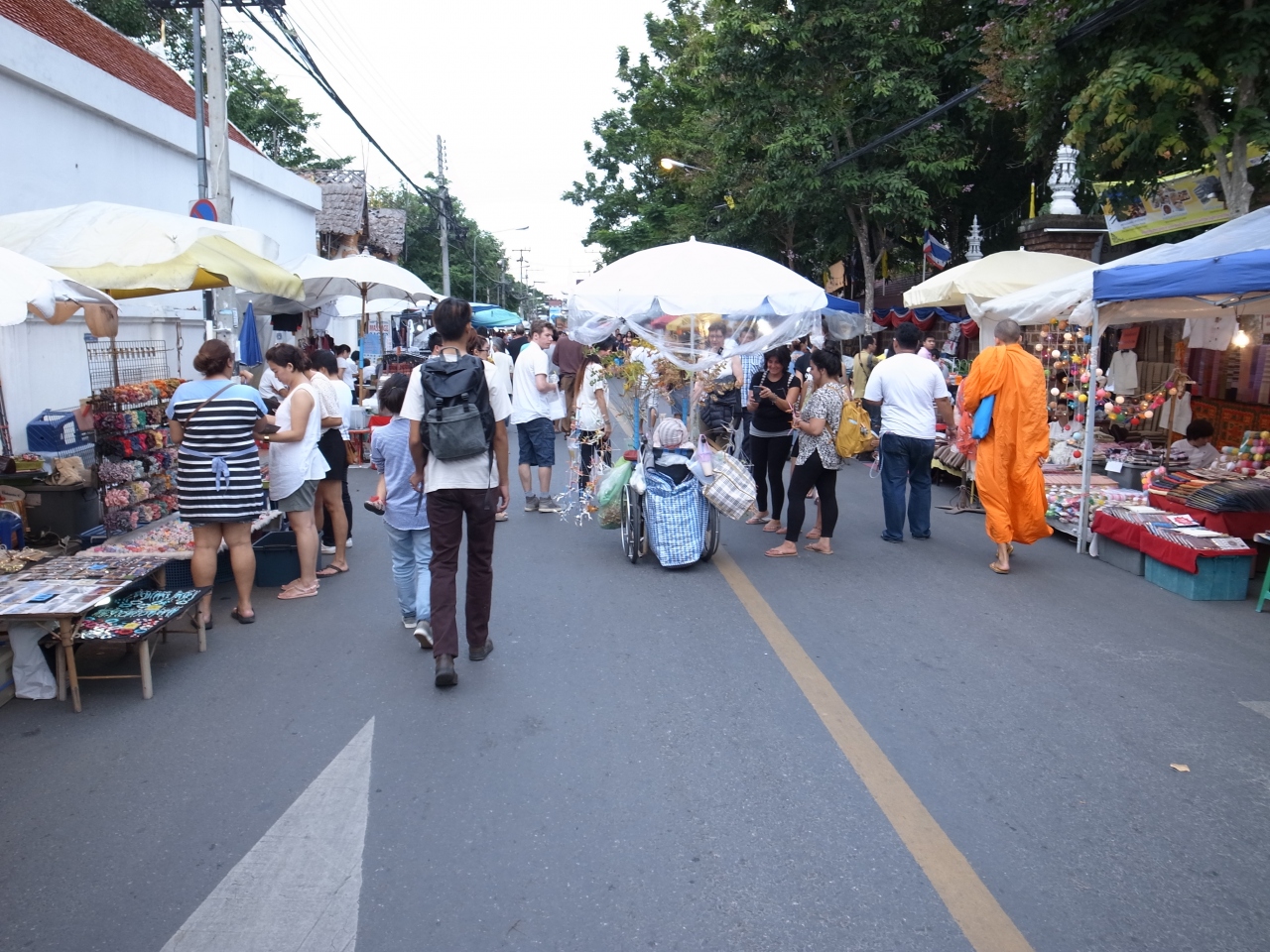 ターペー門付近の通りで、日曜日のみ開催されるマーケット。正午過ぎぐらいから徐々にお店がオープンし始め、夕方ぐらいから混雑し始める。売ってる品物は無いとマーケットとあまり変わり映えしない印象。お祭りみたいな雰囲気は楽しめるけど、あんまり張り切って買うほどのものはな、と思う。