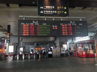 台中駅の新幹線の発車案内掲示板も日本に似ています。切符は有人の切符売り場と自動販売機がありました。お土産屋さんもあります。お菓子などを売っていました。季節柄月餅も売っていました。駅が広々としているのがよかったです。