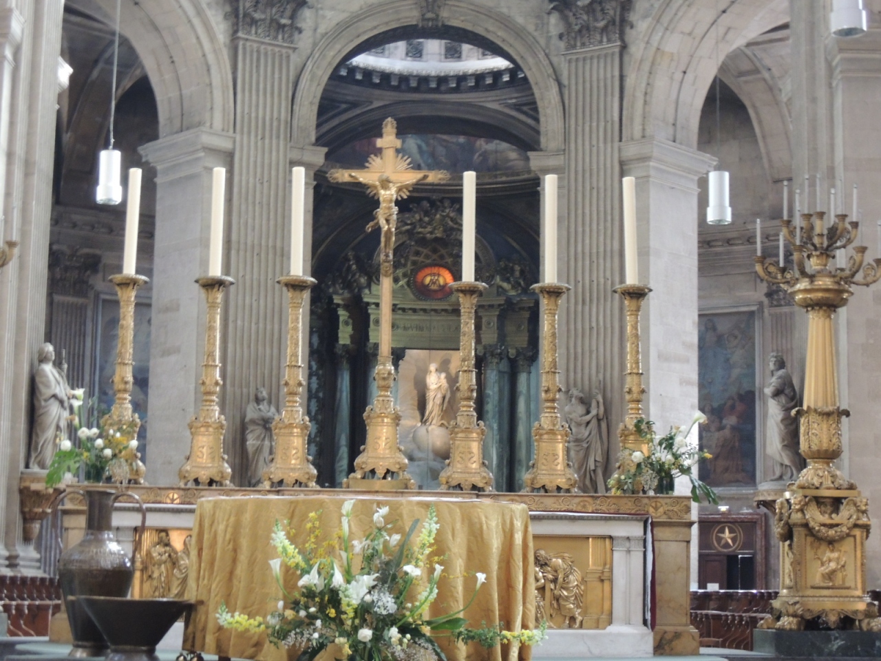 教会内部には彫刻や絵画など見るべきものが多く、まるで美術館のようです。ドラクロアの「ヤコブと天使の戦い」の前にはいつも観光客が集まっています。ベストセラーの小説「ダ・ヴィンチ・コード」に登場する歴史ある教会で、荘厳な雰囲気に浸れます。
