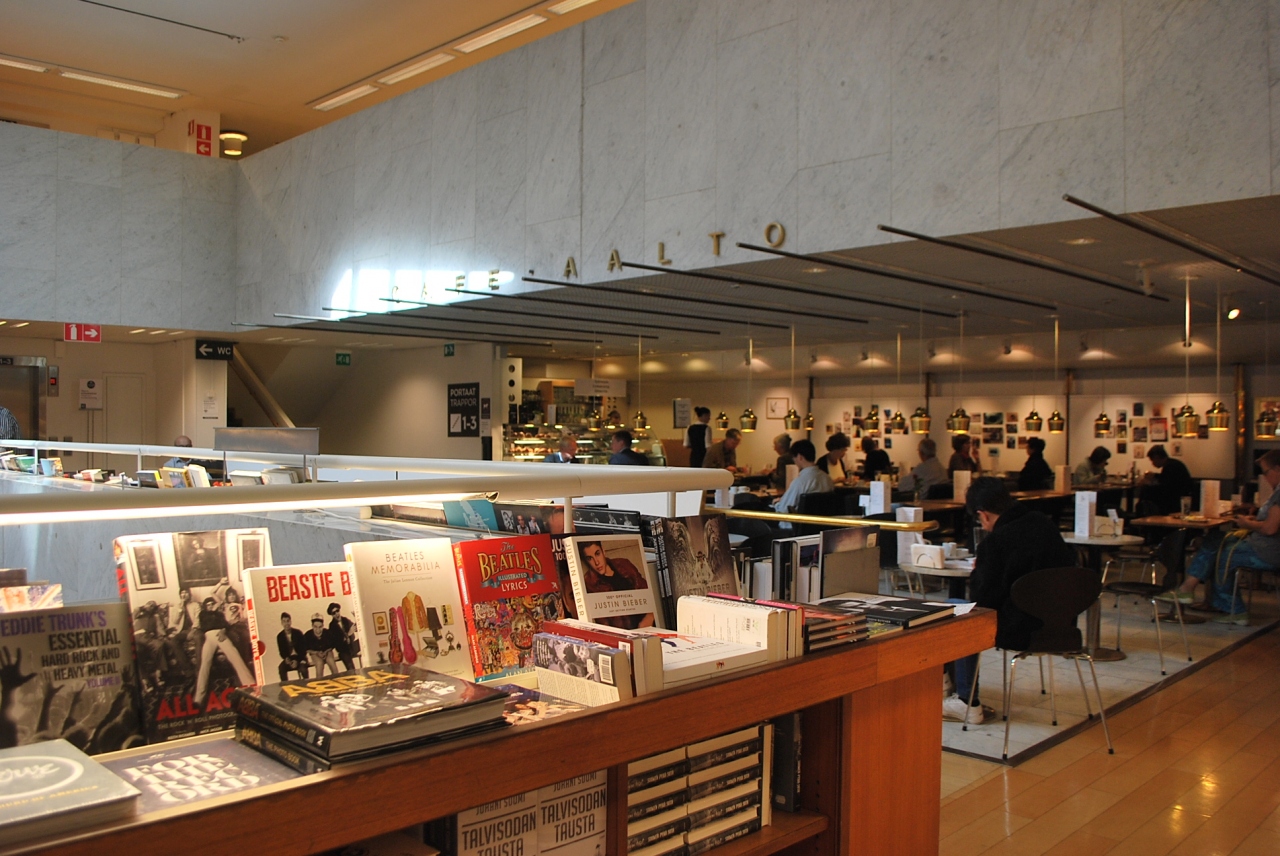 街の中心部にあるアカデミアブックストア内2階にあるカフェです。それほど座席数は多くないですが昼頃に行くと半分以上お客さんで埋まっていました。アアルトカフェですが椅子はヤコブセンのデザインなんだそうです。