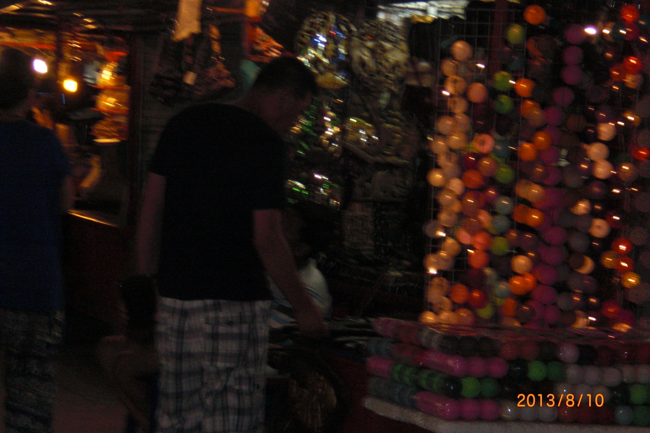 北部のチェンマイでもタイの夏は、とても暑いのでブラブラ歩くには日が暮れてからがいいですね。ナイトバザールの規模はそんなに大きくないみたいですが(昼間歩いたら)夜人が出だしたら、その中を移動するにはかなり大変で、途中から裏道を抜けてホテルに戻りました。