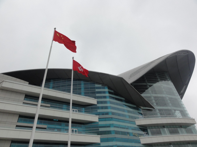 1997年7月、香港が中国に返還される際に、式典が行われた会場です。ビクロリアハーバーに面した側には香港を代表するボヒーニアの花をかたどった黄金色のオブジェがあります。中国人の団体客がひっきりなしに訪れて、その前で記念撮影しています。少し離れた所から撮影すれば、手のひらの上にそのオブジェを掲げるような錯覚の写真を撮れます。