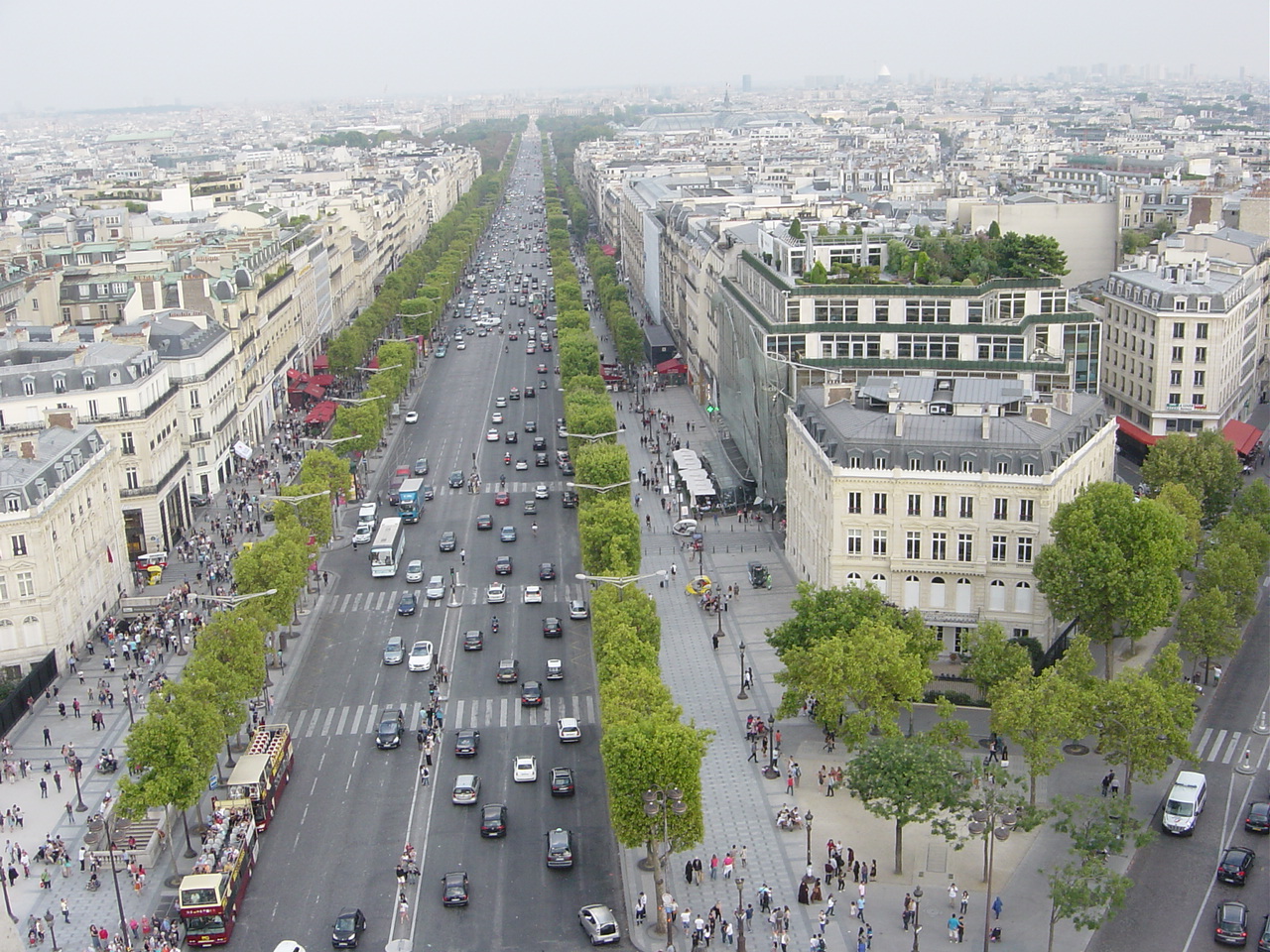 何よりも屋上に上がり360度見渡せる景色はまさに絶景でシャンゼリゼ大通りの先にあるコンコルド広場、勿論エッフェル塔やモンパルナスタワーなどが見える。