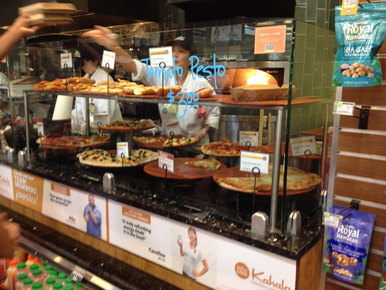 お昼時だったので、まずはデリでランチにしましたが、お惣菜がいっぱい!サラダやピザ、ジュースの種類もいろいろで目移りしてしまいました。