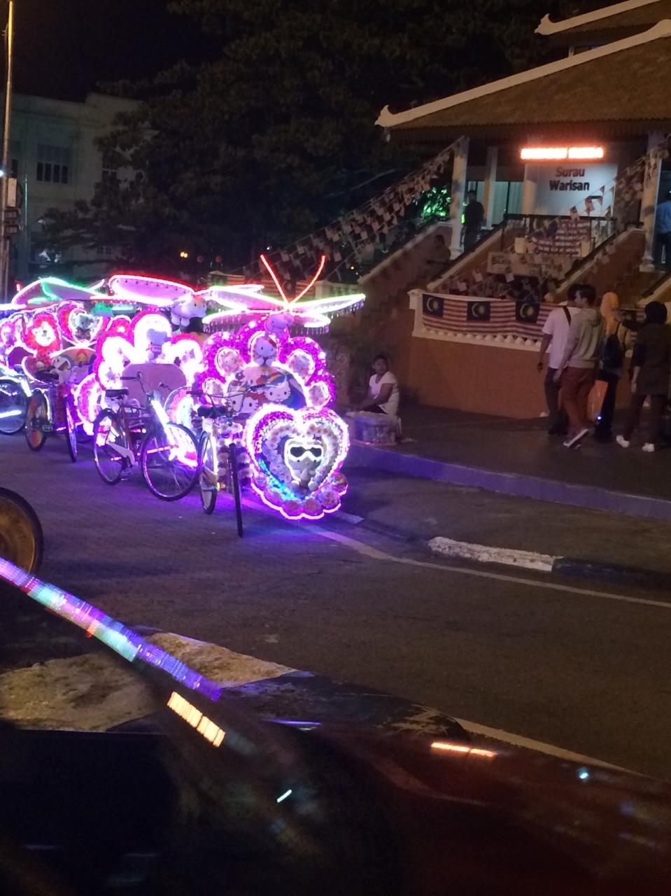 オランダ広場に着いたのは、夜の8時過ぎでしたが派手なトライショーが目につきました。土曜日で、ウィークエンドマーケットもやっていたのでお祭りのよう。旅行に来た気分が盛り上がりました。ただ、2,3日滞在するうちに走行中の音楽のうるささには閉口するようになりますが・・・
