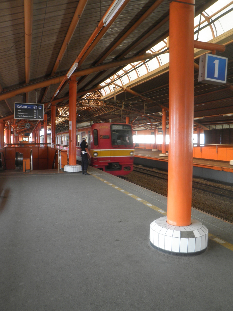シルバーウィークにジャカルタを旅行しました。 繁華街のマンガベサール駅から、歴史地区のコタ駅まで、近郊鉄道のコミューテーターを利用しました。 まず、切符売り場でICカードを買って、改札機にあてるとバーが回るようになりプラットフォームに行けるようになります。
