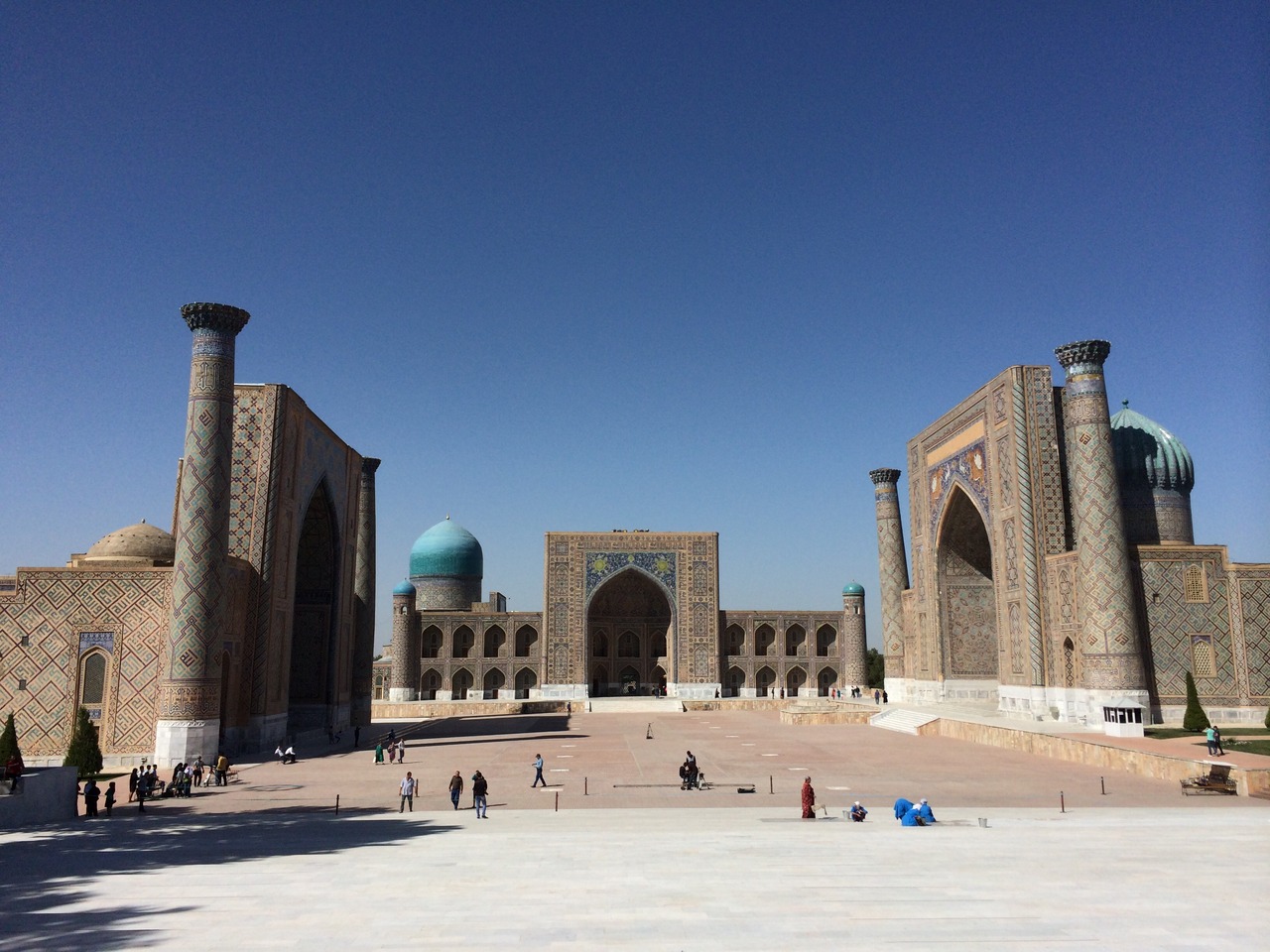 遠くから眺めると、空の青にモスクの青が映えてとっても綺麗。