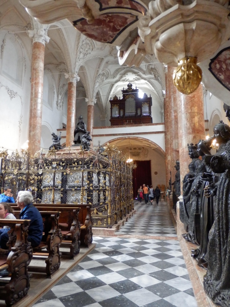両脇に皇帝の親族達のブロンズ像が建ち並ぶドイツルネッサンスの教会です。