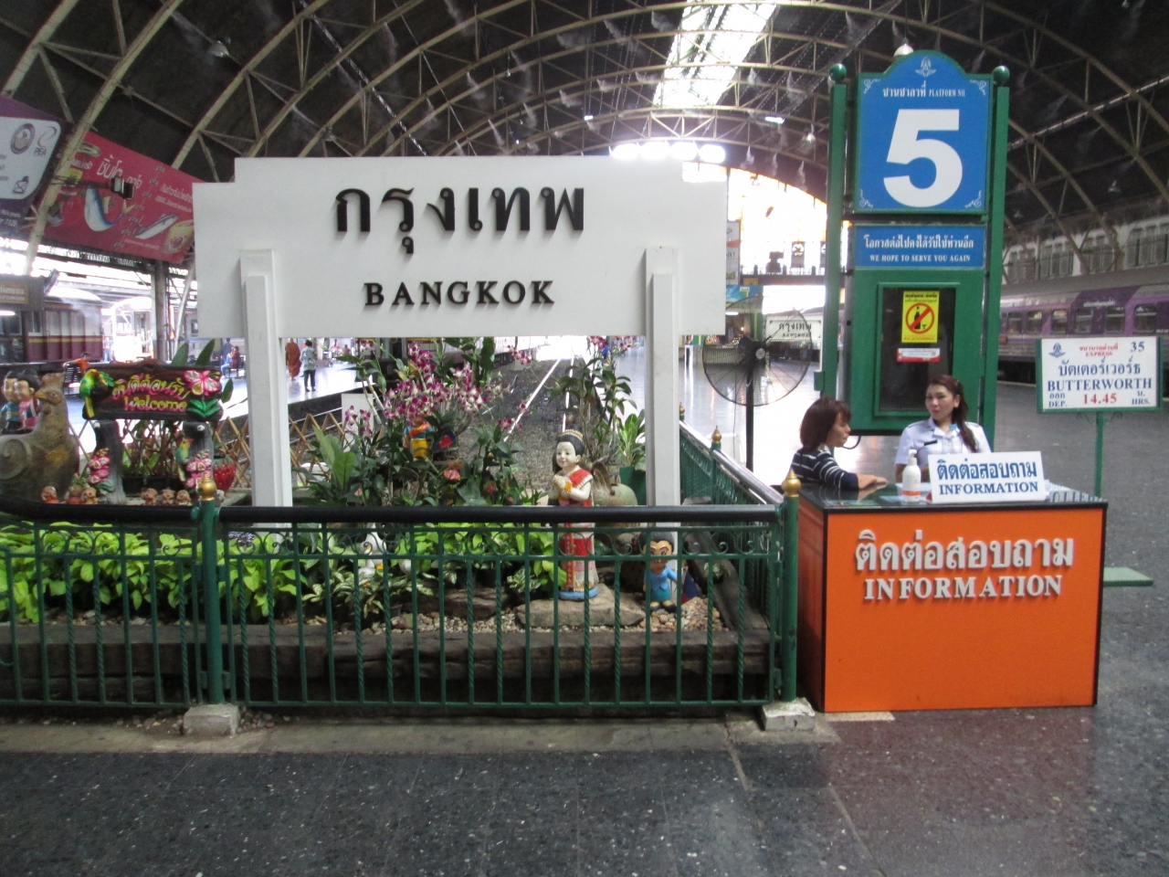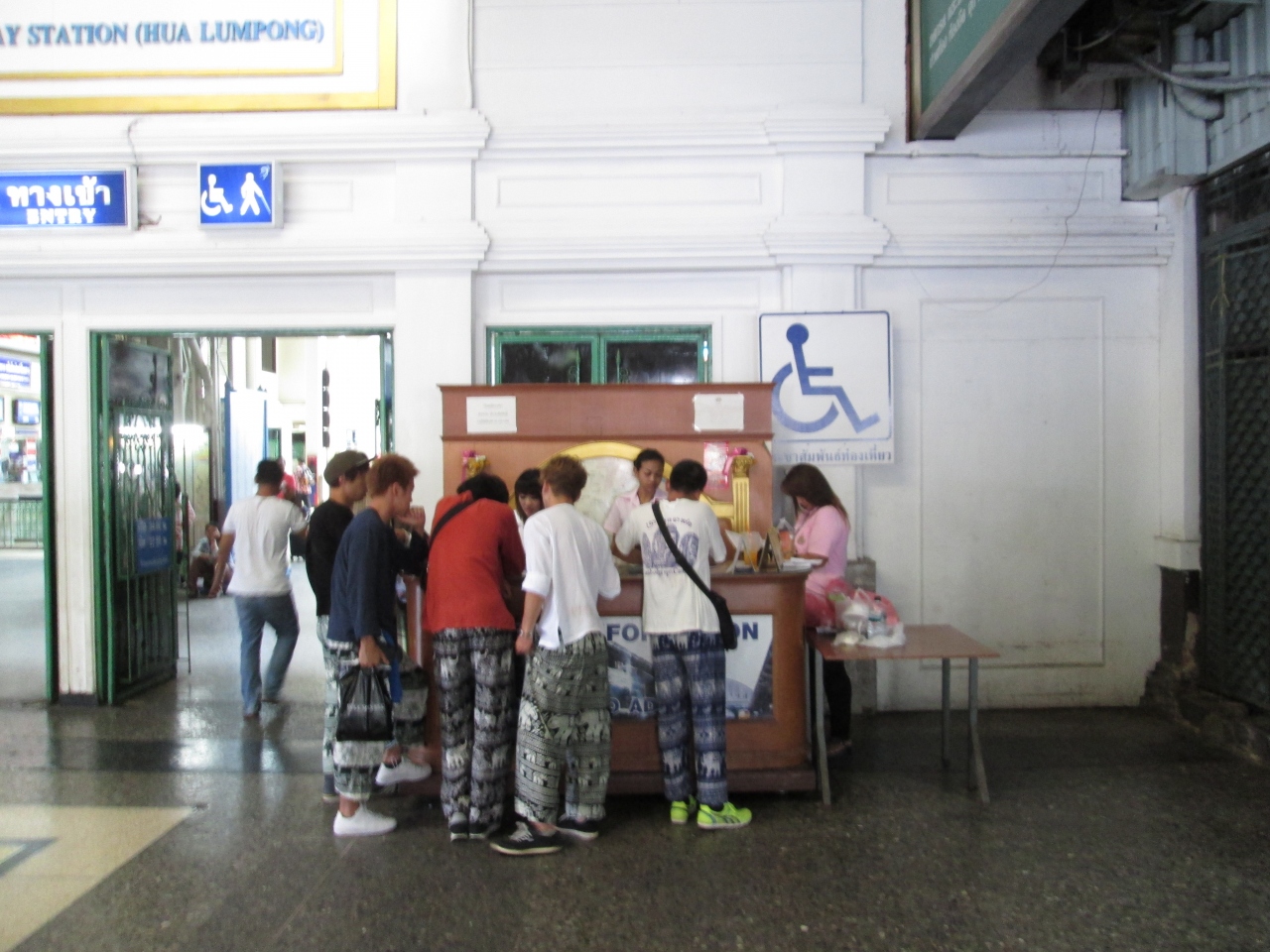 国鉄ファランポーン駅に臨時のインフォメーションカウンターがいくつかありました。日本ではなかなか見れないターミナル駅の光景があります。日中は列車の発着本数が多いため、駅構内の旅行者は多いです。日本人が話す片言の英語でも親切に対応してくれました。