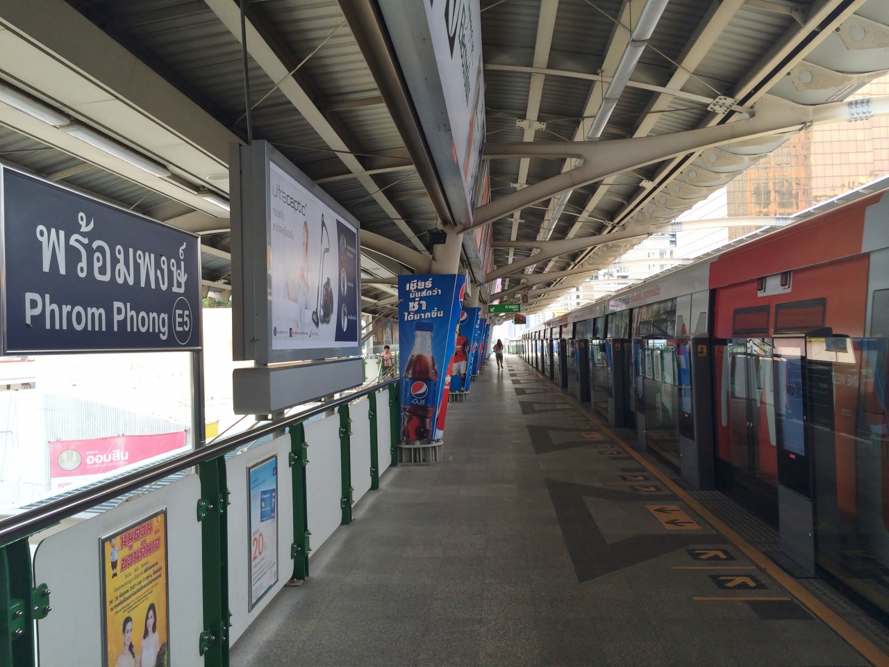 ショッピングモールのエンポリウムと直結し、近くにはバンコク駐在の日本人御用達のフジスーパーや日本食レストラン、居酒屋、ラーメン店、マッサージなどがありますので、この駅を利用することなくバンコク滞在もできます。