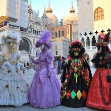 サン・マルコ寺院、ドゥカーレ宮殿、コッレール博物館、新政庁、時計塔に囲まれたこの広場は世界で最も美しい広場といわれてます