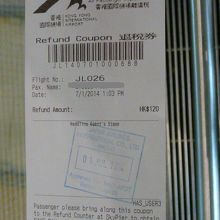 今回はJALを利用し旅をし、香港国際空港から帰国します。JAL・ANAなど主要な航空会社は、マカオなどから直接空港へ行くフェリーが出航しています。料金はやや高いかな、と思うのですが、香港国際空港に到着しても香港に入国したようにならないので、空港使用税が免除され120HKDの返金があります。何だか得した気分です。飛行機のチェックイン時に写真の用紙をくれますので、忘れないように現金と交換して下さいね。