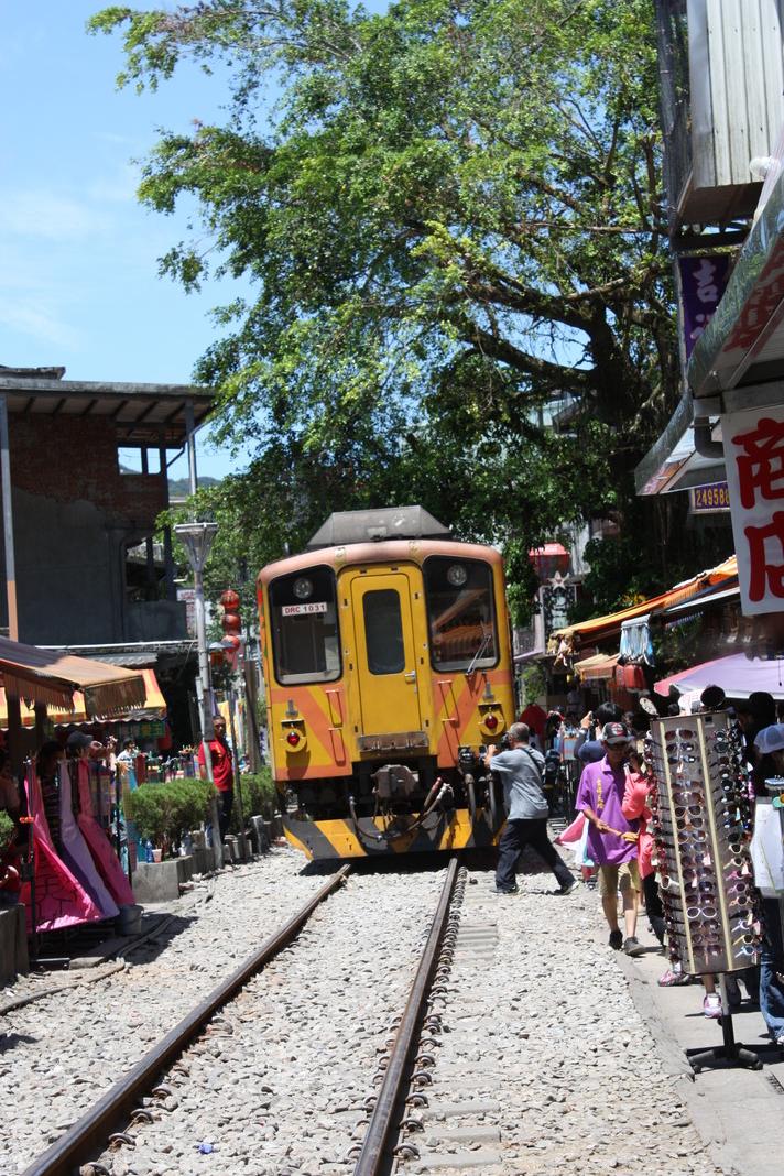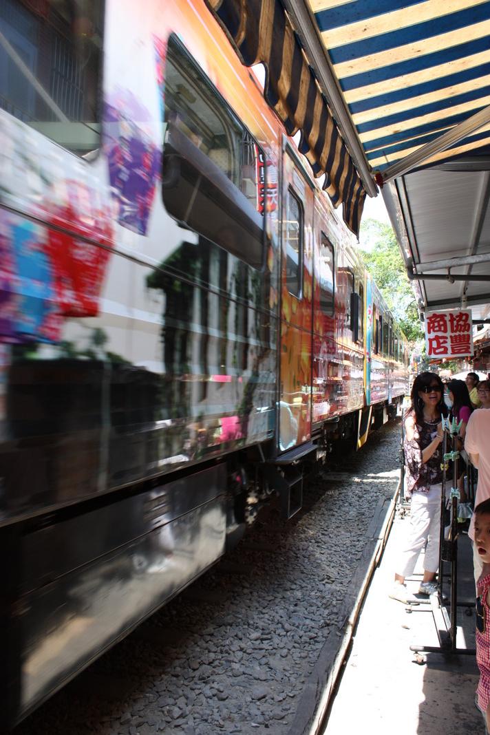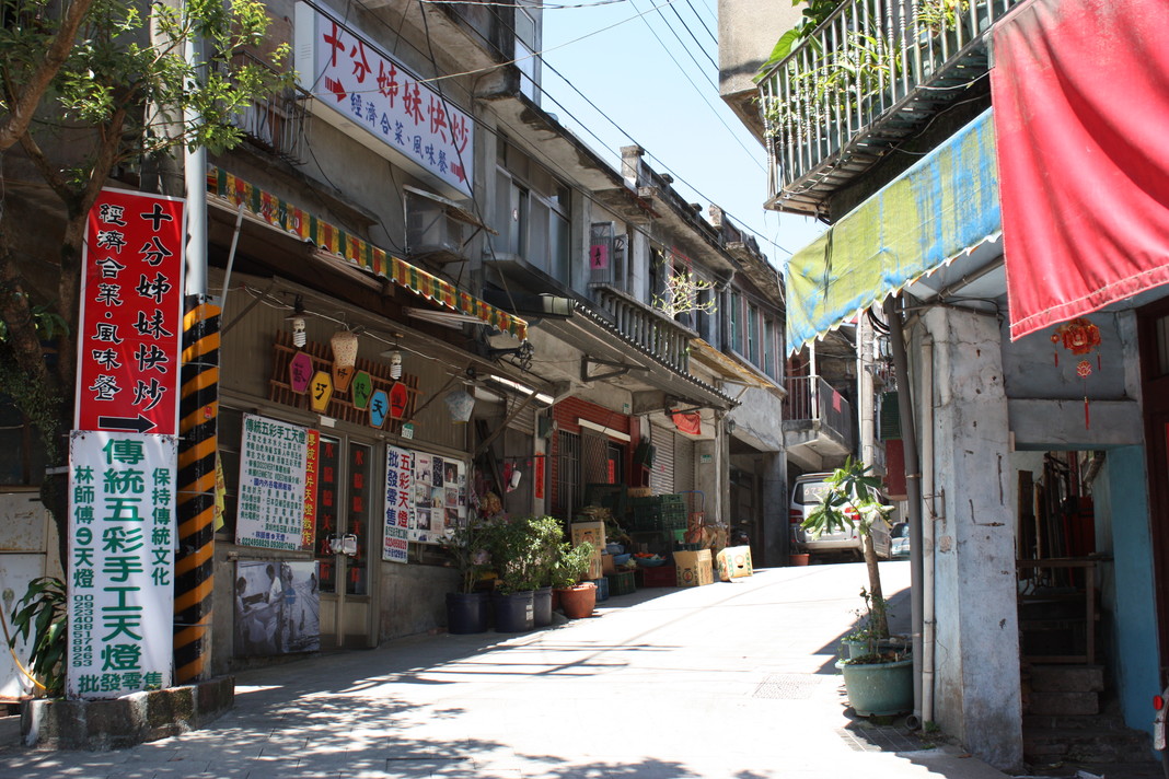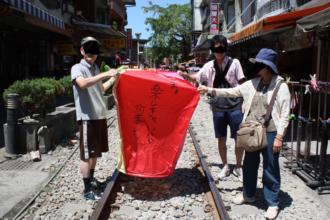線路ができてから土産物屋さんができていたのだと思うのですが、今見ると焦点ぎりぎりを車両が通過する感じで、店の人も列車が来る前に荷物をどけたりしています。ローカル線ならではの光景かもしれません。線路の上からランタンを飛ばして遊んでみました。飛ばせる地域が決められているようです。