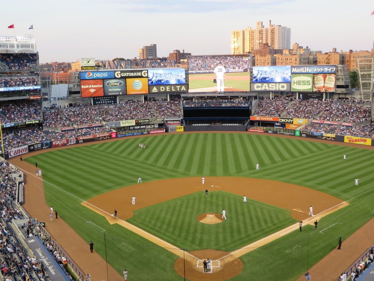 今年イチロー選手や黒田選手が活躍し、松井選手も所属していたヤンキースの本拠地です。松井選手がヤンキースを去る晩年に球場がリニューアルされ、かつての球場跡は今も広場として野球を楽しめるようになっていました。